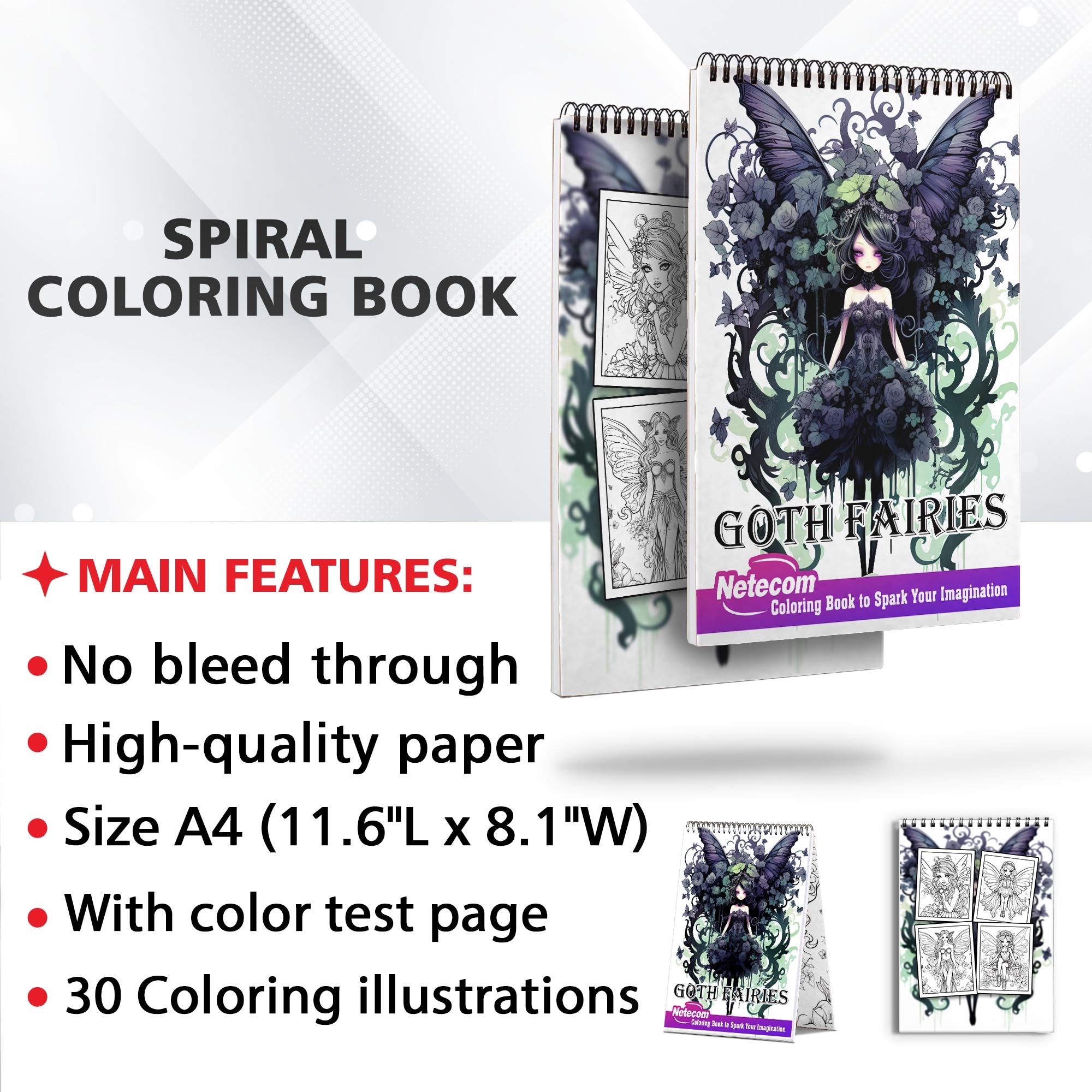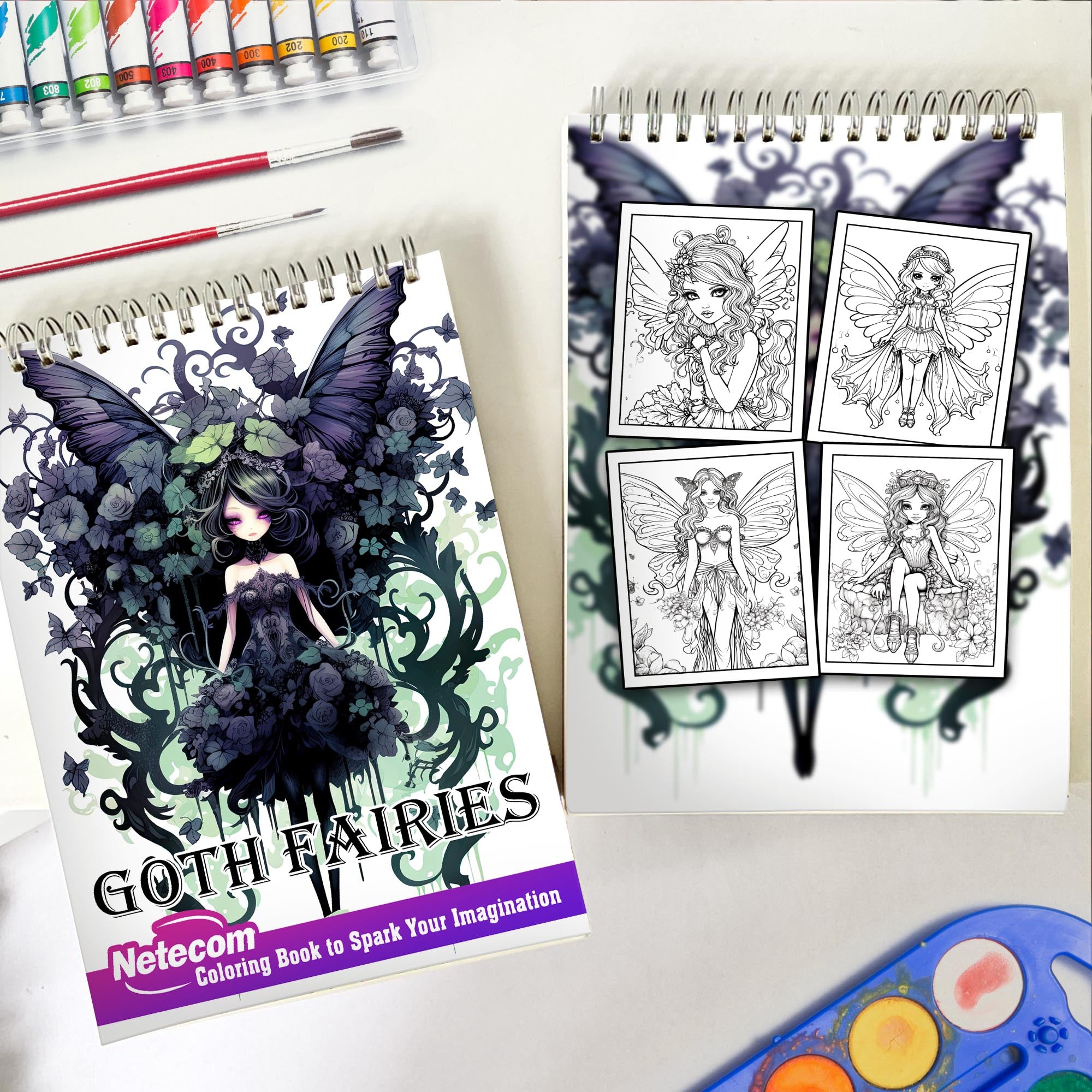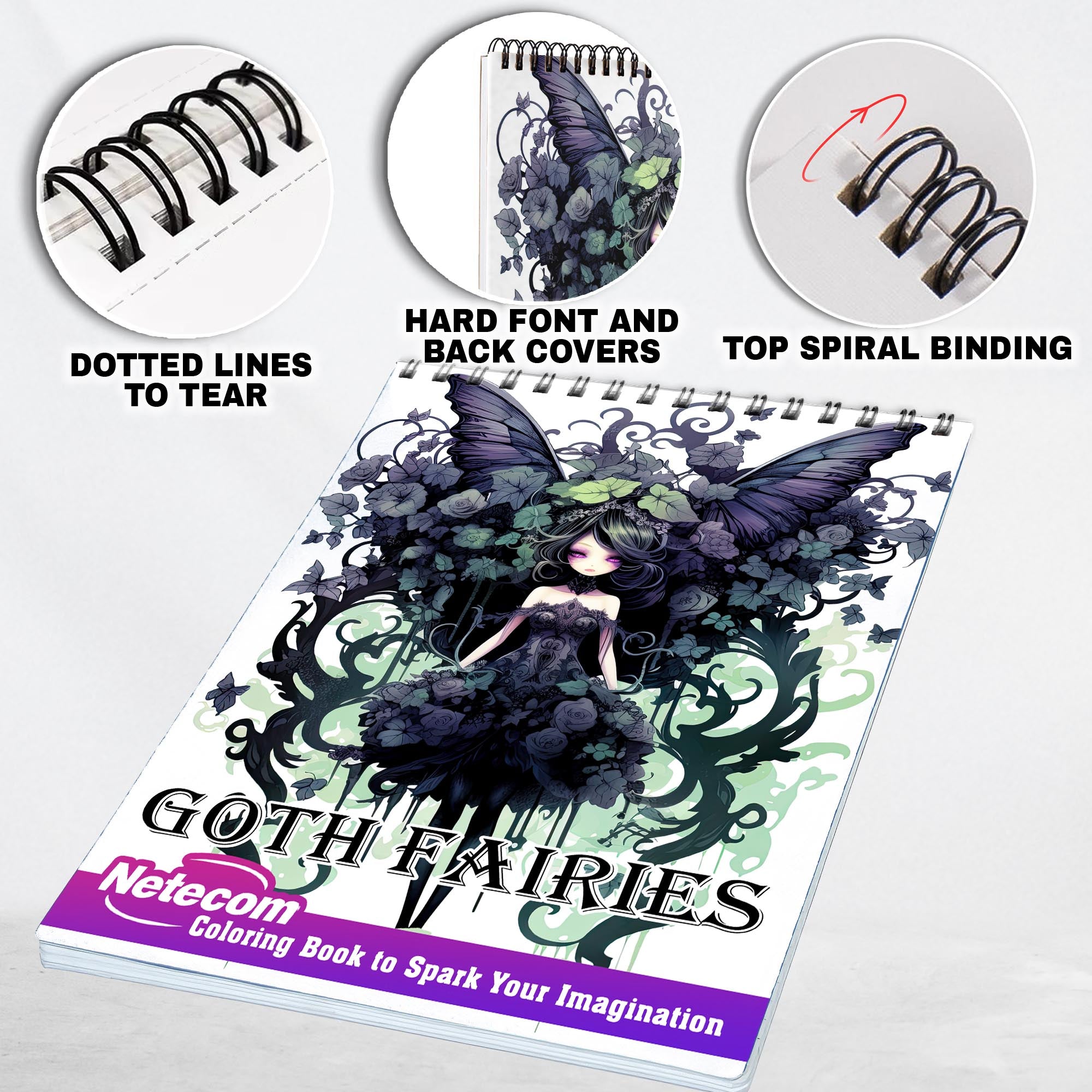 Goth Fairies Spiral Bound Coloring Book, Unleash Your Creativity with 30 Enchanting Coloring Pages, Bringing to Life Stories of Darkly Magical Gothic Fairies