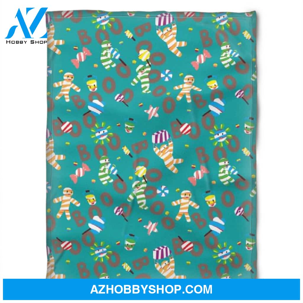 Halloween Blue Pattern Horrible Fleece Blanket Halloween Adult Blanket Pumpkins Emotions Halloween Trick or Treat