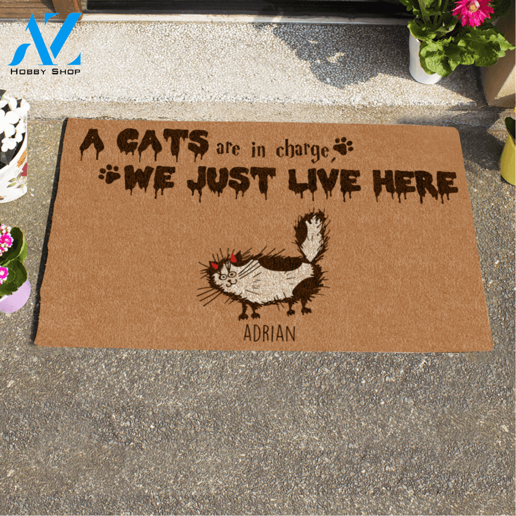 Halloween Fluffy Cat , The Cats Are In Charge We Just Live Here Personalized Doormat HQ