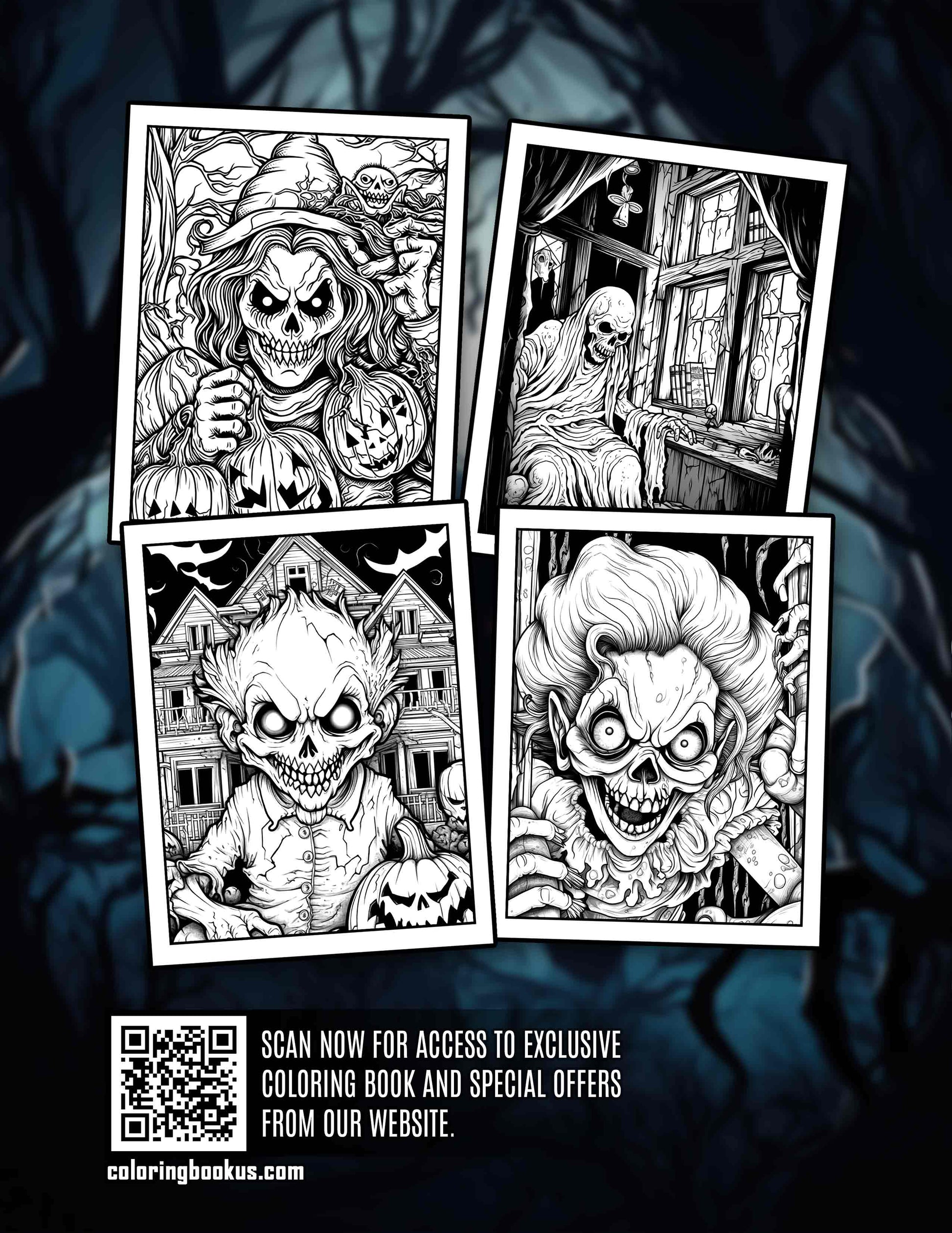 • Encounter a variety of spooky Halloween scenes, from haunted houses and eerie moonlit landscapes to trick-or-treaters and ghostly apparitions. Each illustration captures the essence of Halloween night, evoking a sense of mystery and enchantment.
