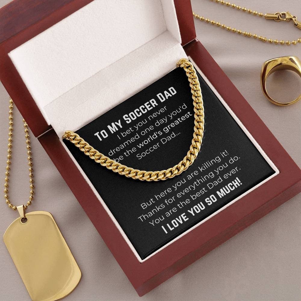 Handmade Necklace Message Card Jewelry Message Necklace Personalized Gifts Soccer Dad gift. Cuban Link Chain necklace