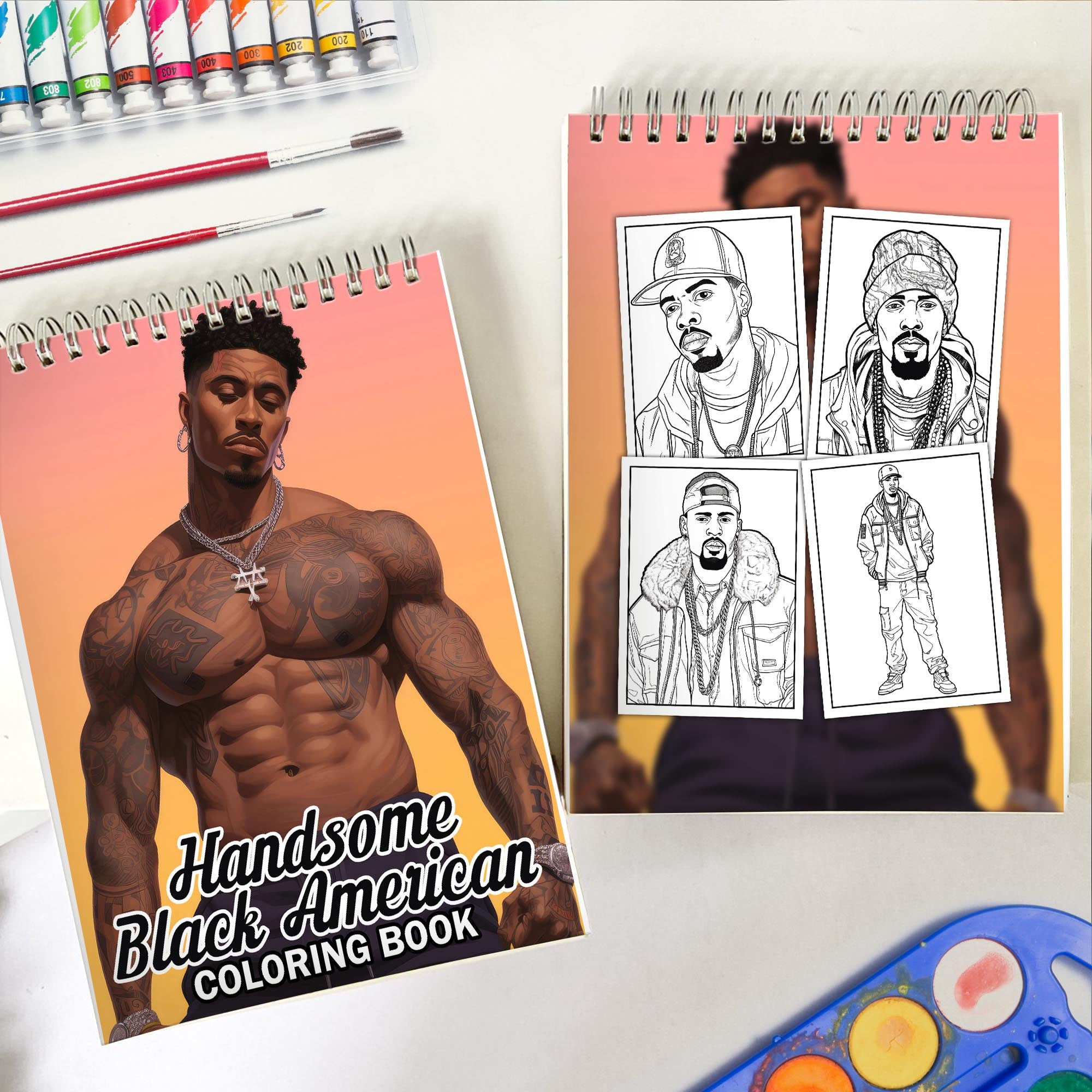 Handsome Black American Spiral Bound Coloring Book: 30 Captivating Coloring Pages of Black Americans for a Stylish and Artistic Journey
