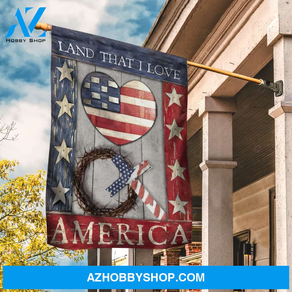 Heart shape, Crown of thorn, Colorful cross, Land that I love - Jesus Flag