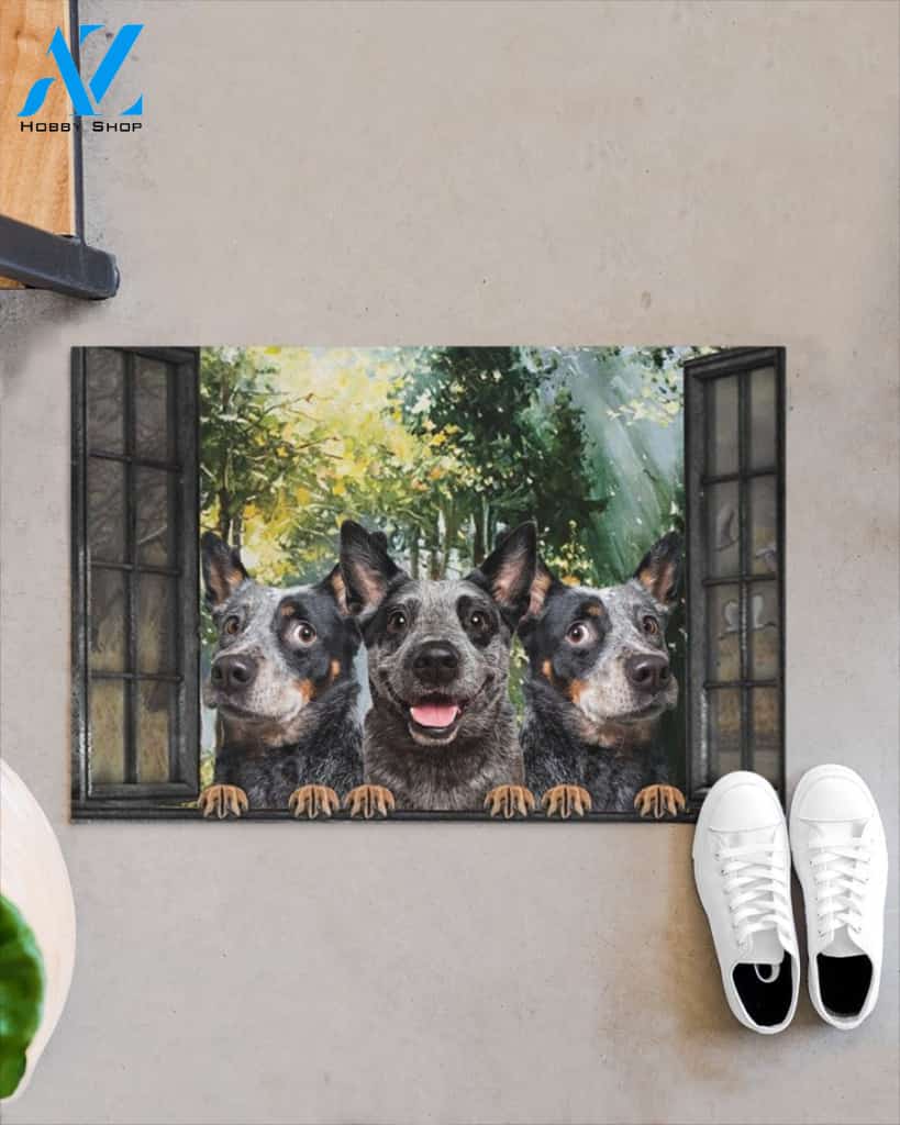 Heelers In Spring Garden Window Indoor And Outdoor Doormat