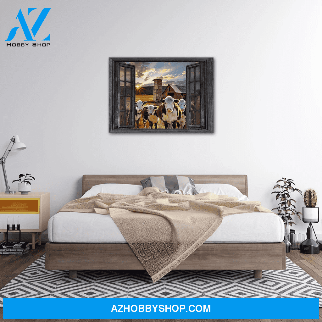 Hereford Cattle Cow Outside The Window Premium Canvas