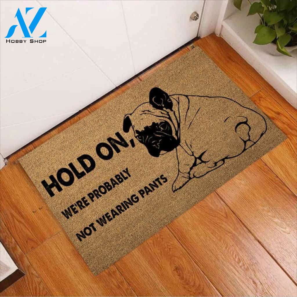 Hold On We’re Probably Not Wearing Pants – Bulldog Easy Clean Welcome DoorMat