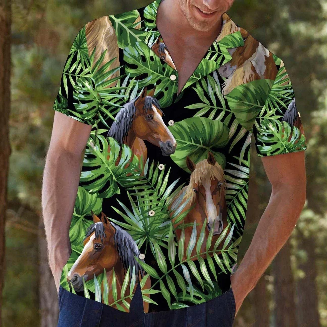 Horse Tropical Leaves Green Unique Design Hawaiian Shirt For Men Women
