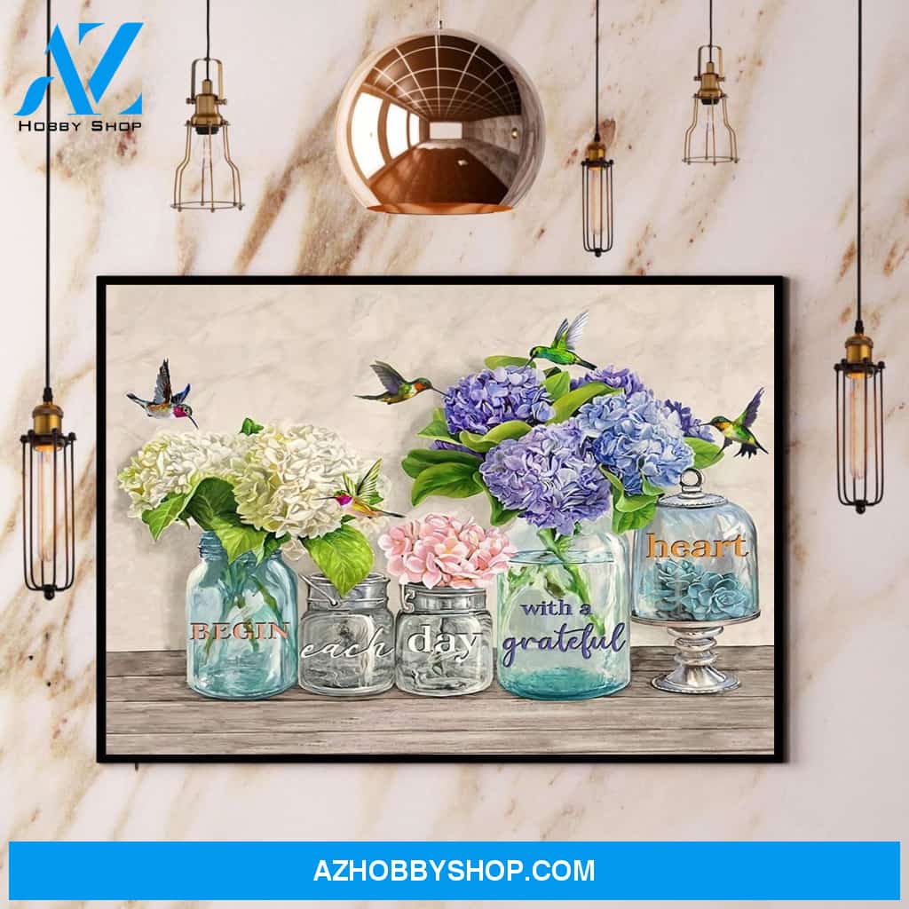 Hummingbird Begin Each Day With A Grateful Heart Paper Canvas And Poster, Wall Decor Visual Art