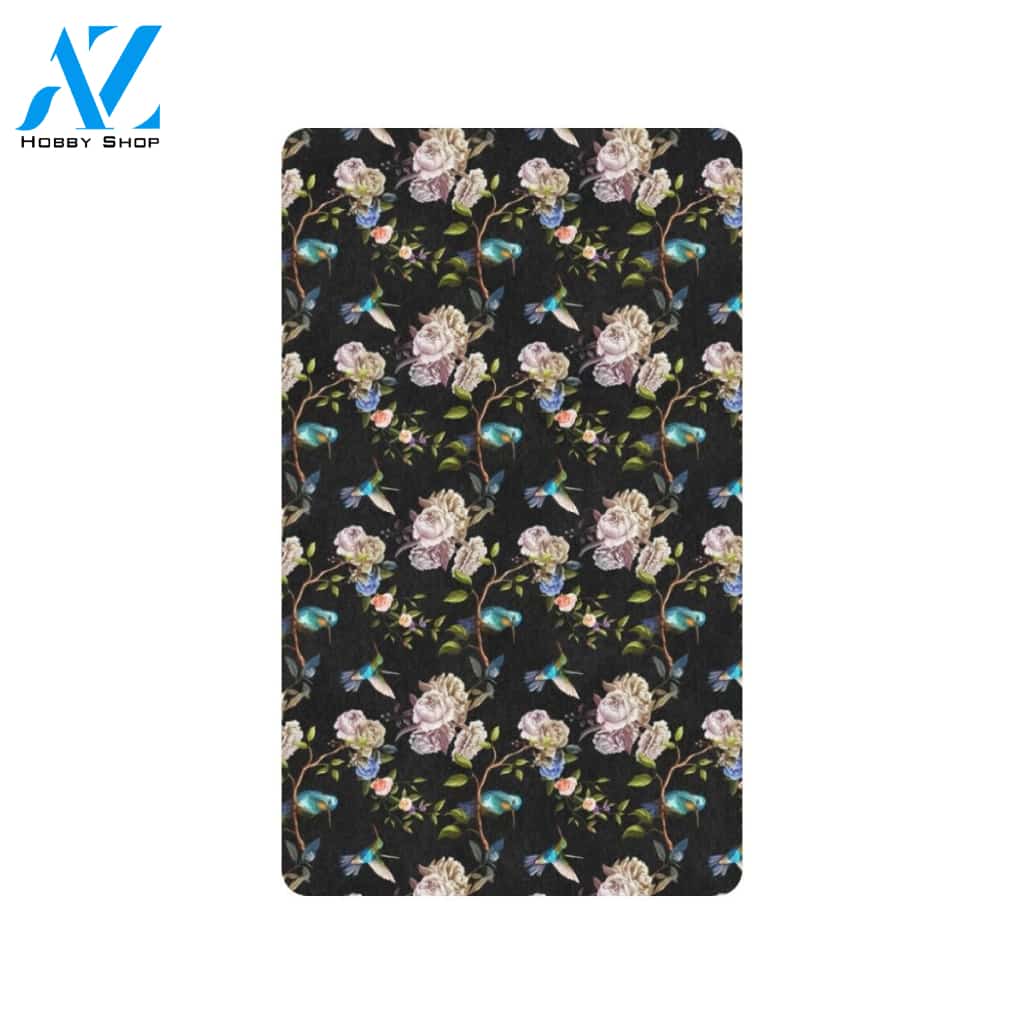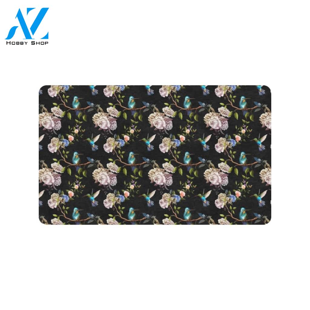 Hummingbird Flower Themed Print Rubber Doormat