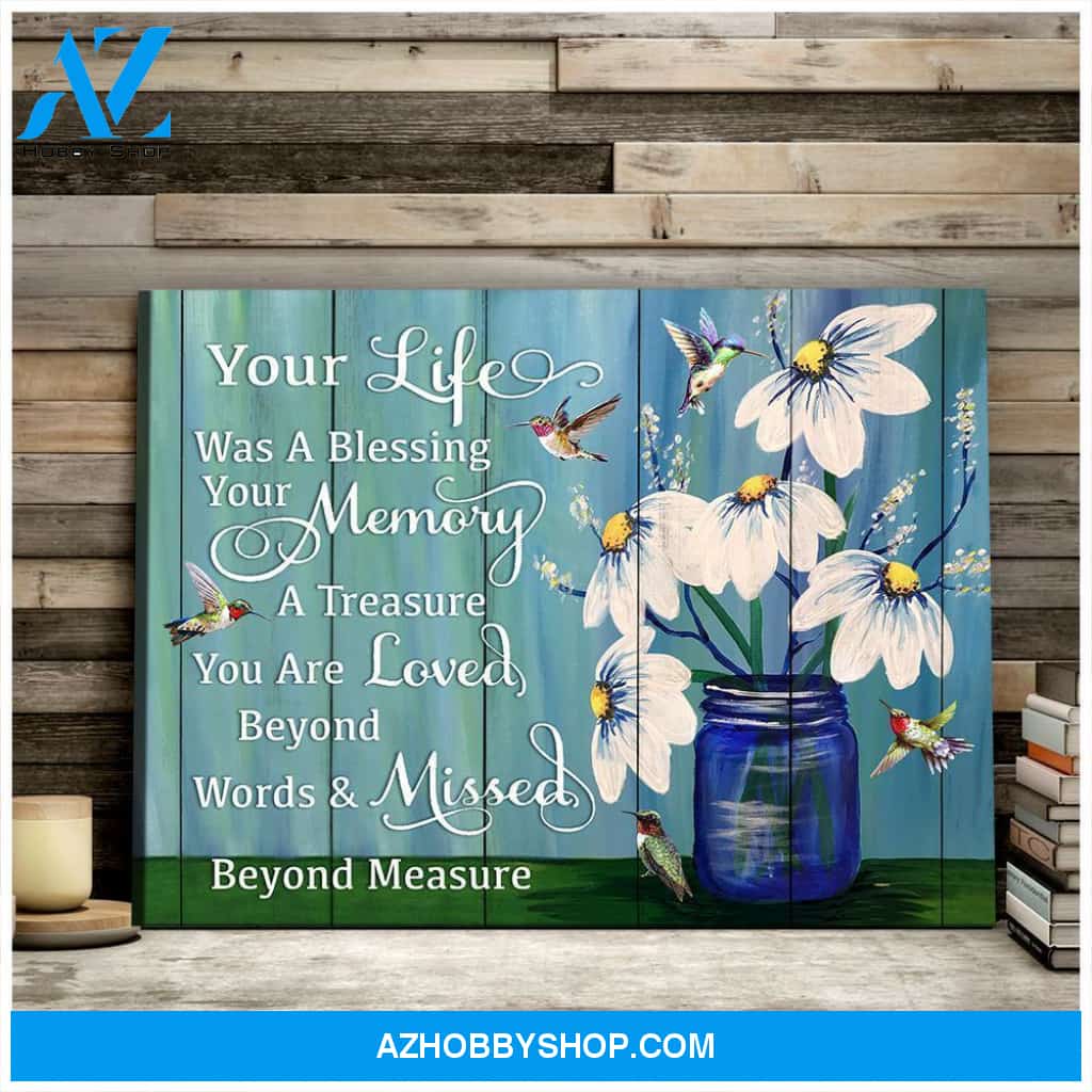 Hummingbird Memorial Premium Wall Art Canvas - Your Life Was a Blessing Premium Canvas