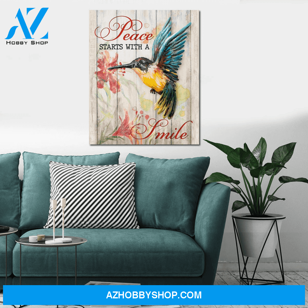 Hummingbird Peace Starts With A Smile Wall Art Canvas