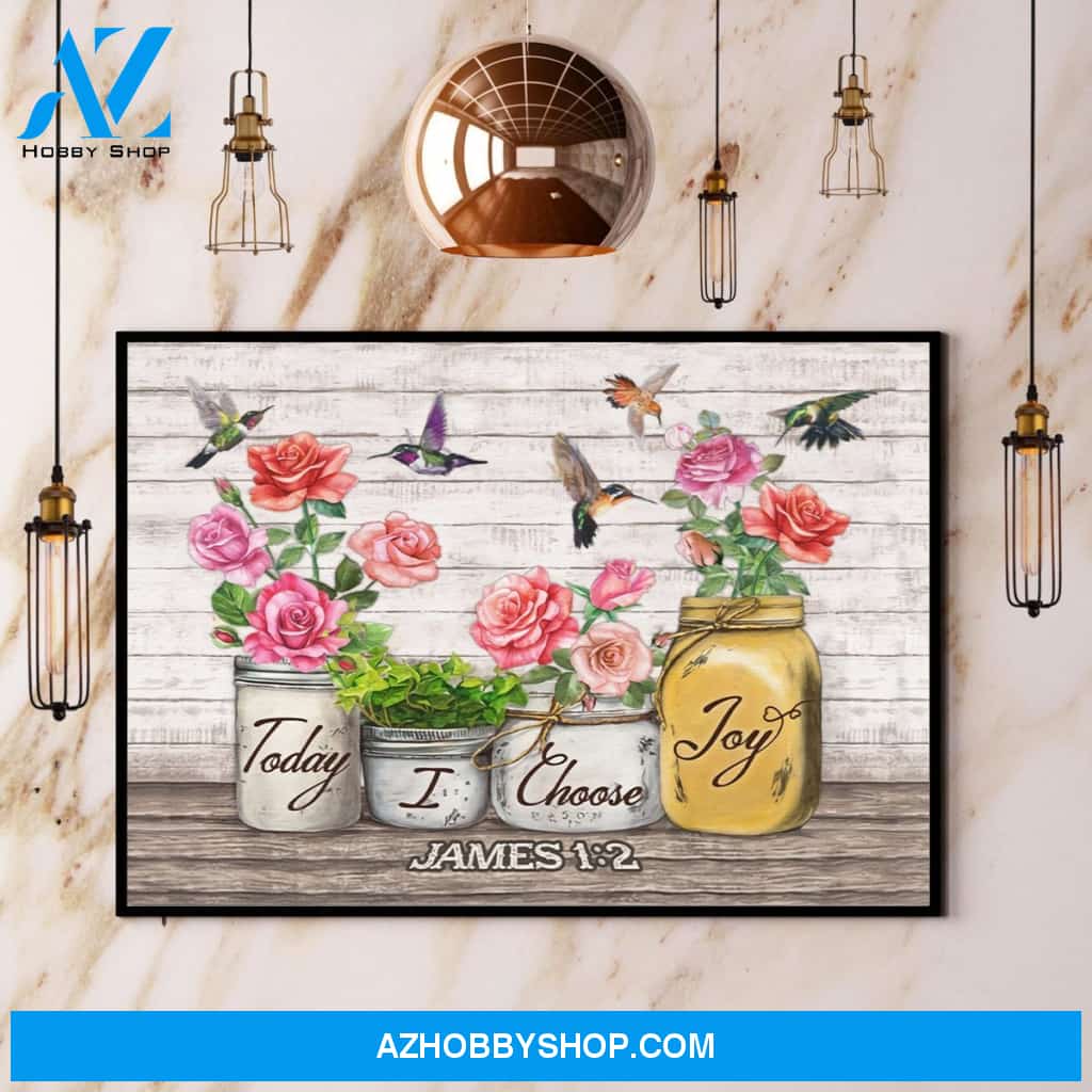 Hummingbird Rose Today I Choose Joy Canvas And Poster, Wall Decor Visual Art