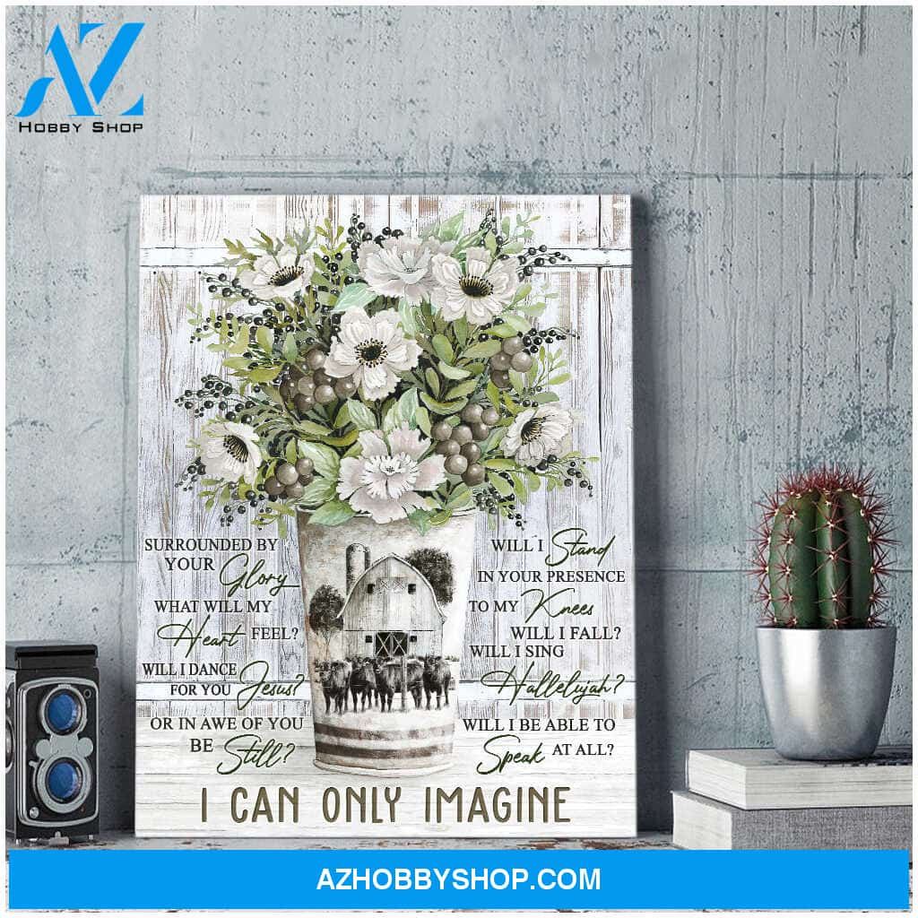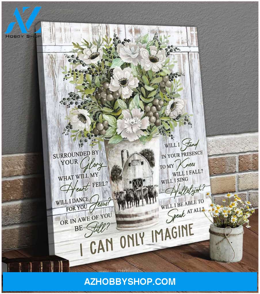 I Can Only Imagine Barn and Cow Canvas Wall Art Decor