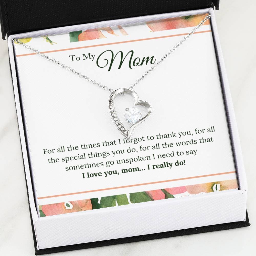 I Love You Mom I Really Do Forever Love Necklace (14K White Gold Finish)