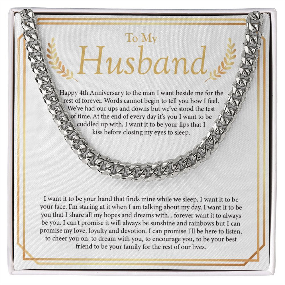 "I Want You To Be My Everything" Husband 4th Wedding Anniversary Necklace Gift From Wife Cuban Link Chain Jewelry Box