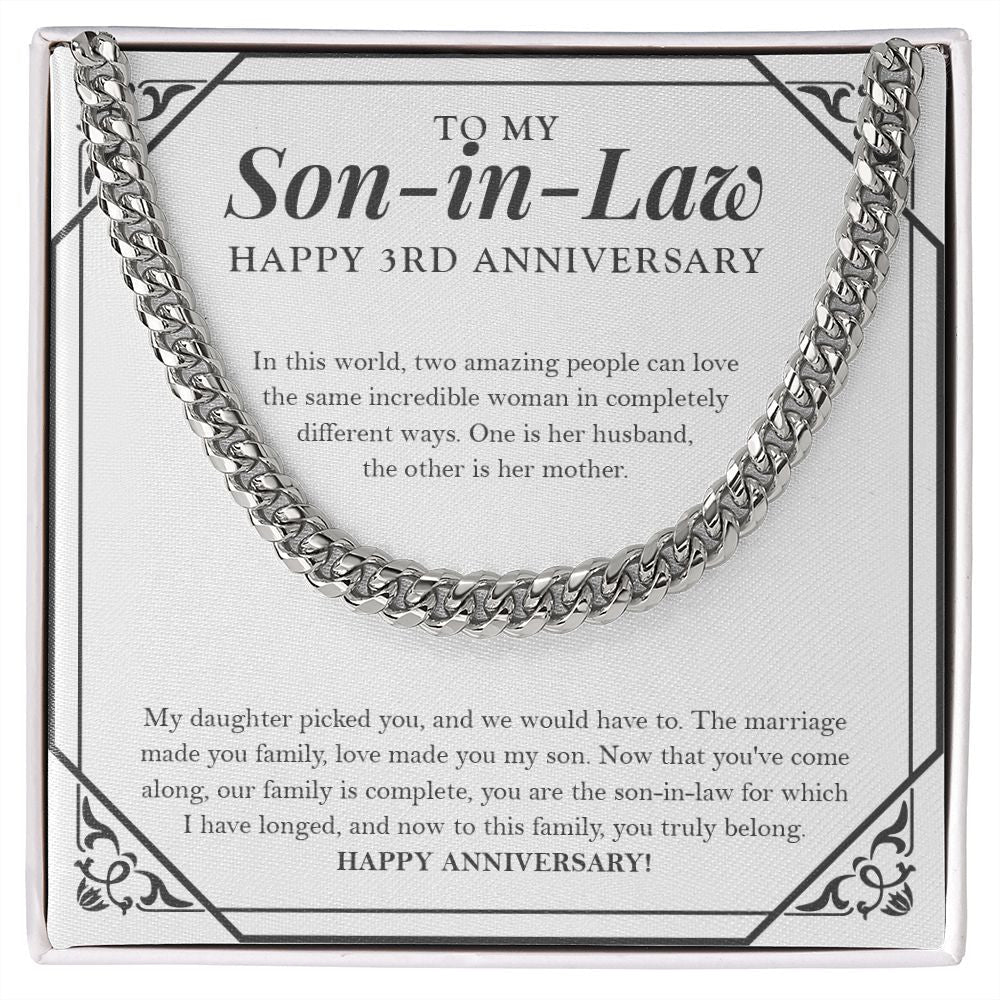 "In Completely Different Ways" Son-In-Law 3rd Wedding Anniversary Necklace Gift From Mother-In-Law Father-In-Law Cuban Link Chain Jewelry Box