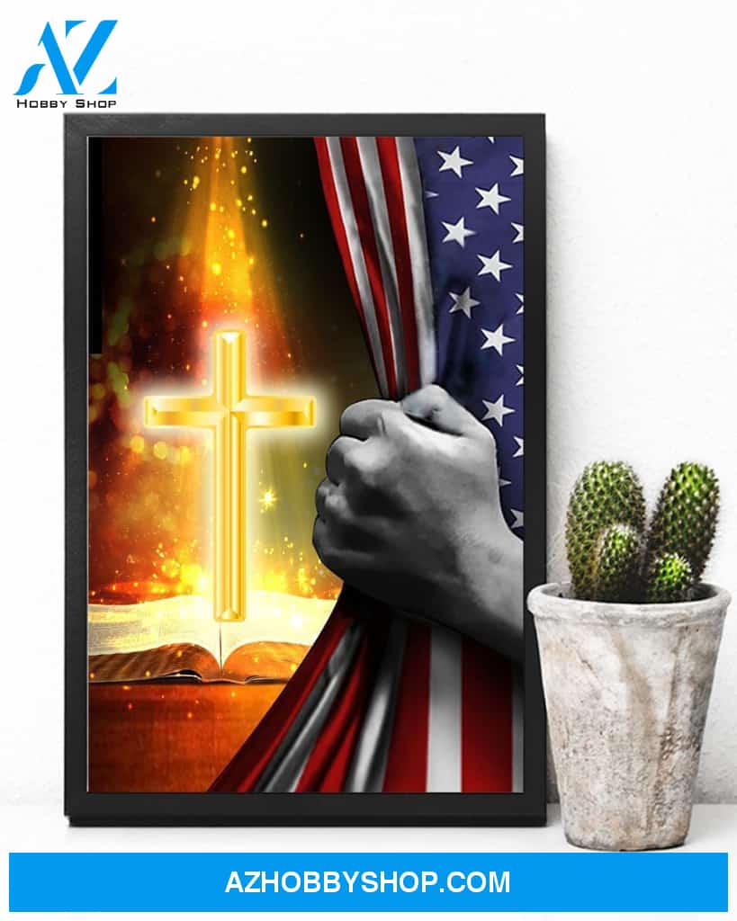 Jesus Christ Proud American Flag Easter Canvas And Poster, Wall Decor Visual Art, Wall Poster, My Poster Wall