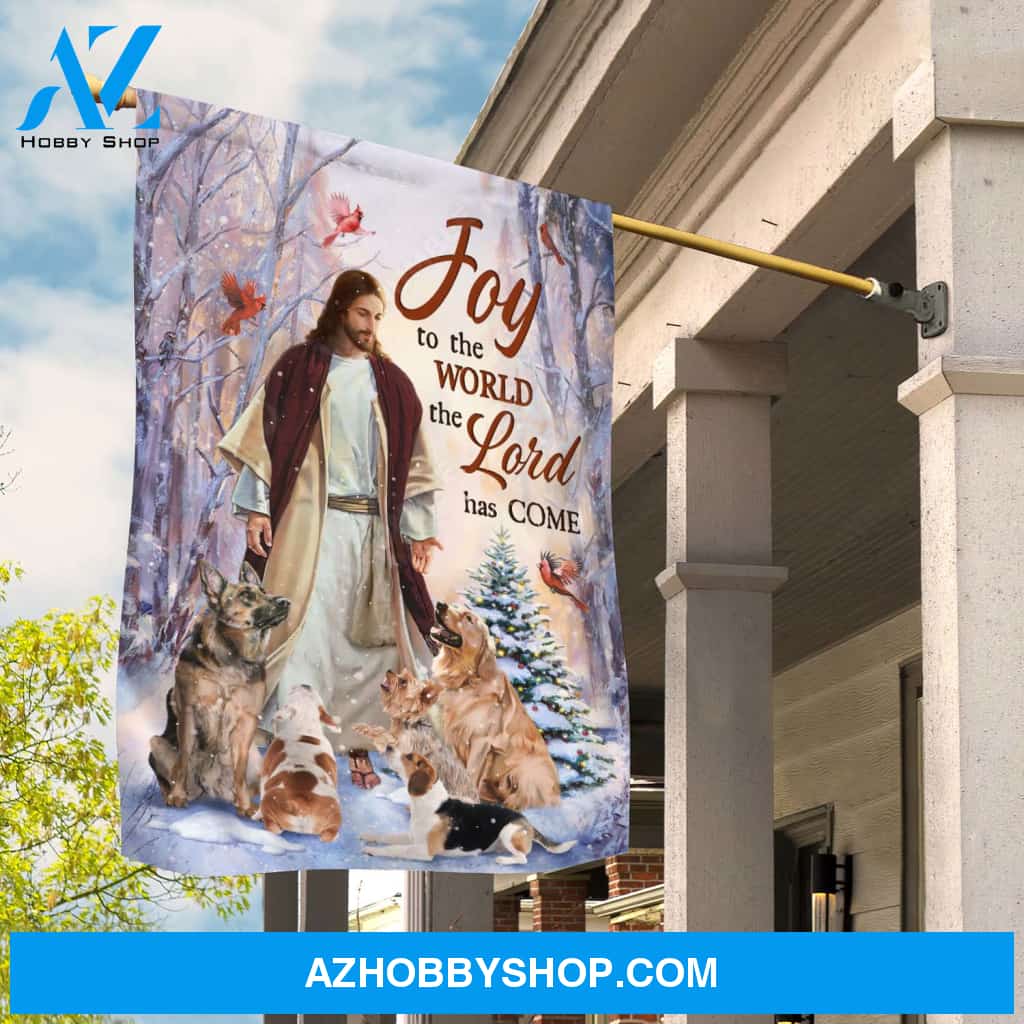 Jesus painting, Cute dog drawing, Red cardinal, Joy to the world, the Lord has come - Jesus Flag
