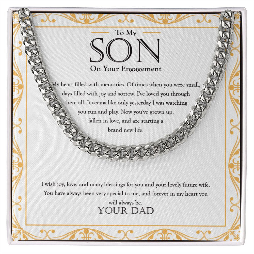"Joy And Sorrow" Son Engagement Necklace Gift From Dad Cuban Link Chain Jewelry Box