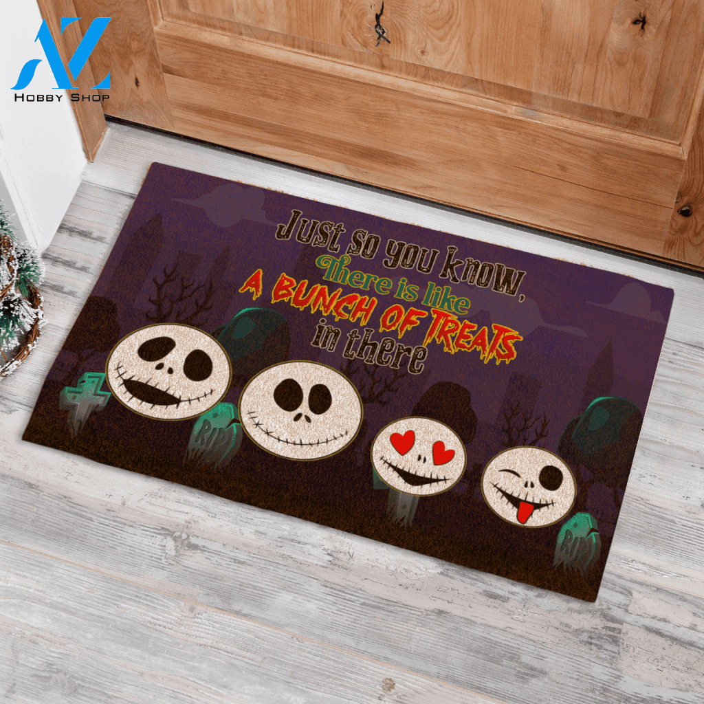 Just So You Know There's Like A Bunch Of Treats In There Halloween Personalized Doormat AP01