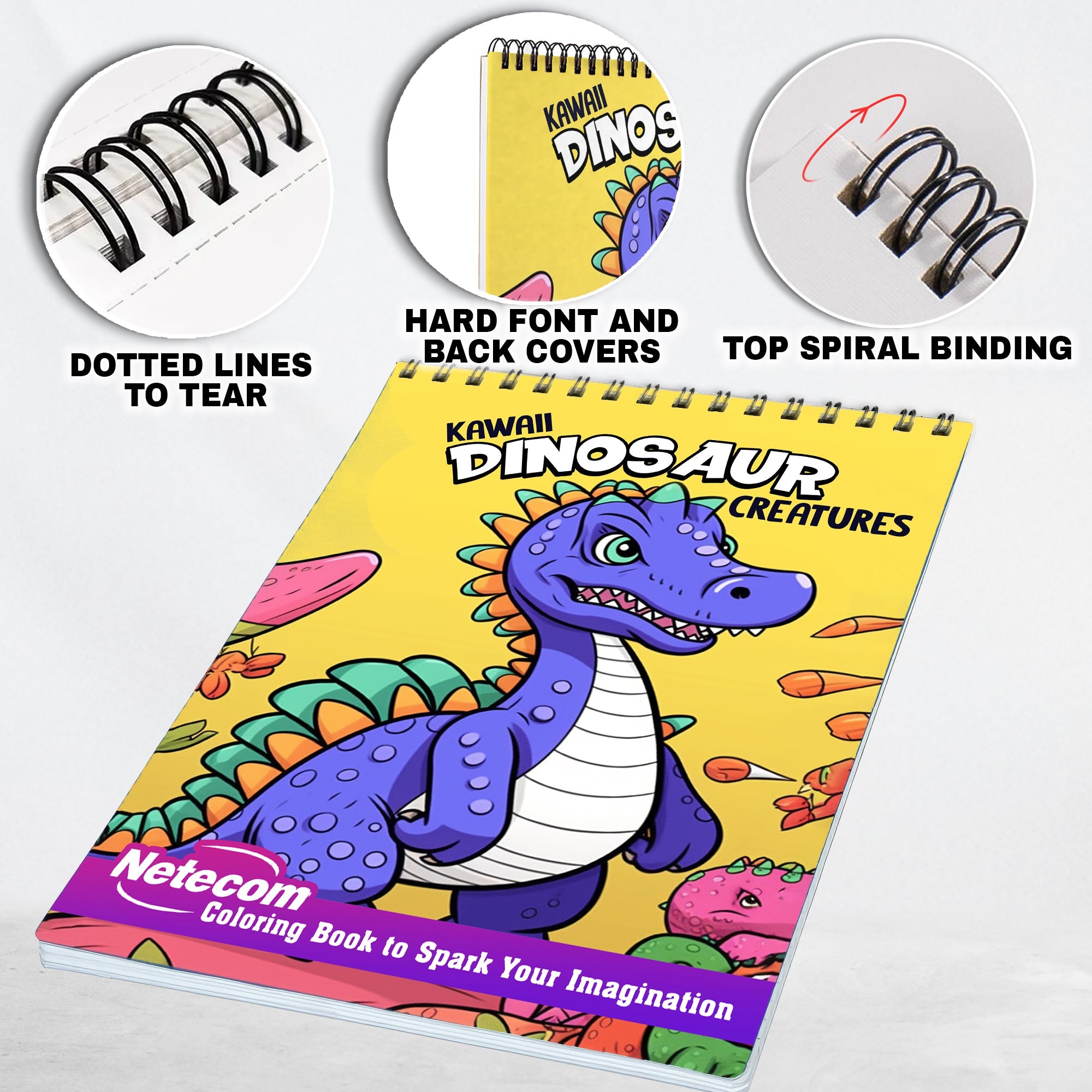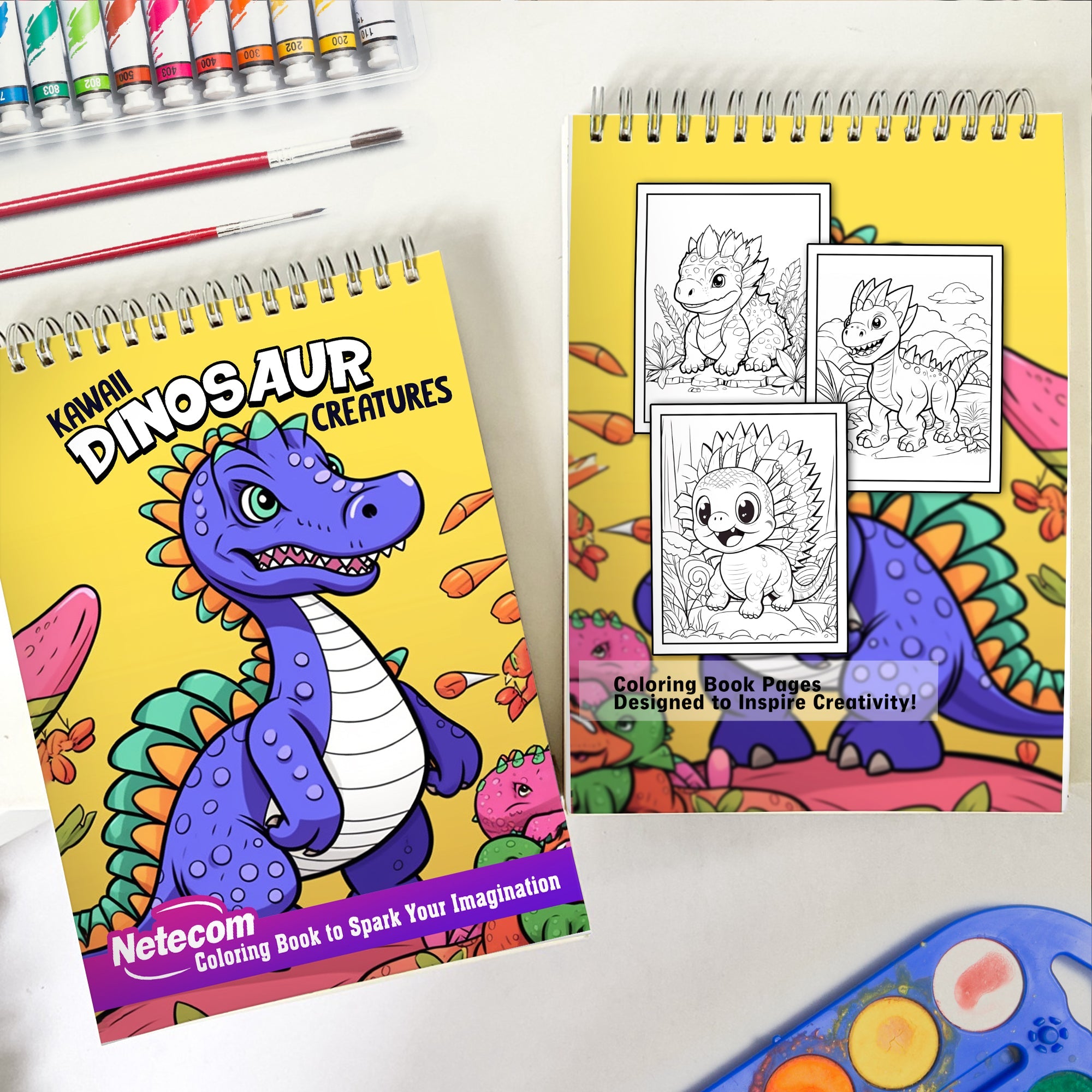 Kawaii Dinosaur Creatures Spiral Bound Coloring Book For Kids, Join the Fun with 30 Festive Coloring Pages, Featuring Kawaii Dinosaur Creatures Celebrating in a Playful and Colorful Atmosphere