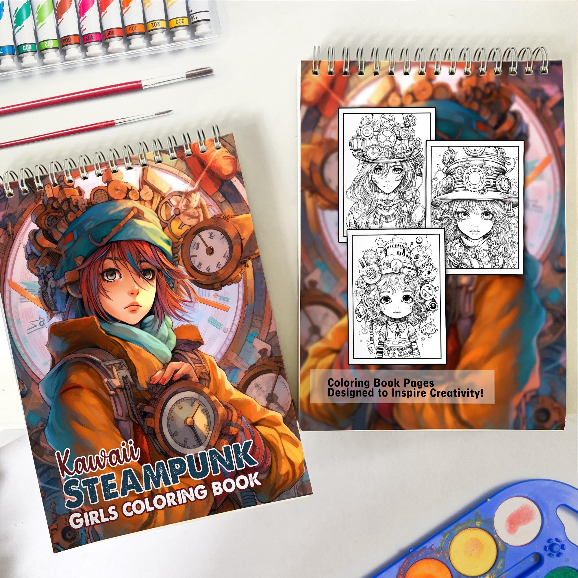 • This coloring book invites you to explore the whimsical world of kawaii steampunk, where imagination knows no limits and creativity thrives. It’s a delightful escape into a realm where vintage aesthetics meet adorable charm, sparking joy and inspiration in every stroke of color.