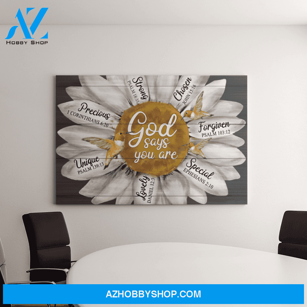 Jesus Canvas Wall Art - Daisy - God says you are with hummingbird Canvas