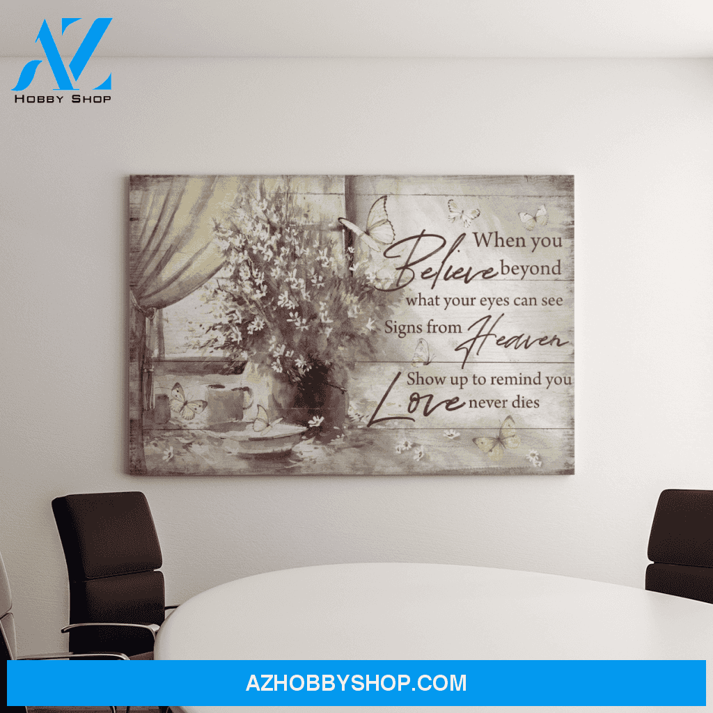 Jesus Canvas Wall Art - Heaven - Signs from Heaven show up to remind you love never dies Canvas