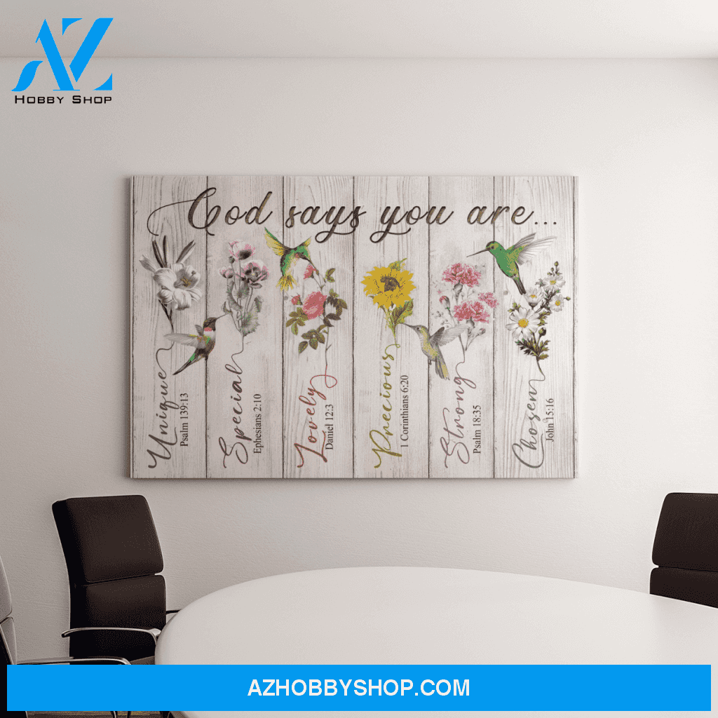 Jesus Canvas Wall Art - Hummingbird and Flowers - God says you are Canvas