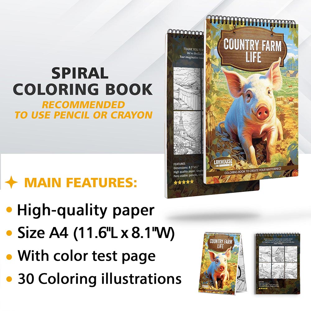 LBKHOUSE Country Farm Life Coloring Book for Adult, Spiral Bound, Soft Cover