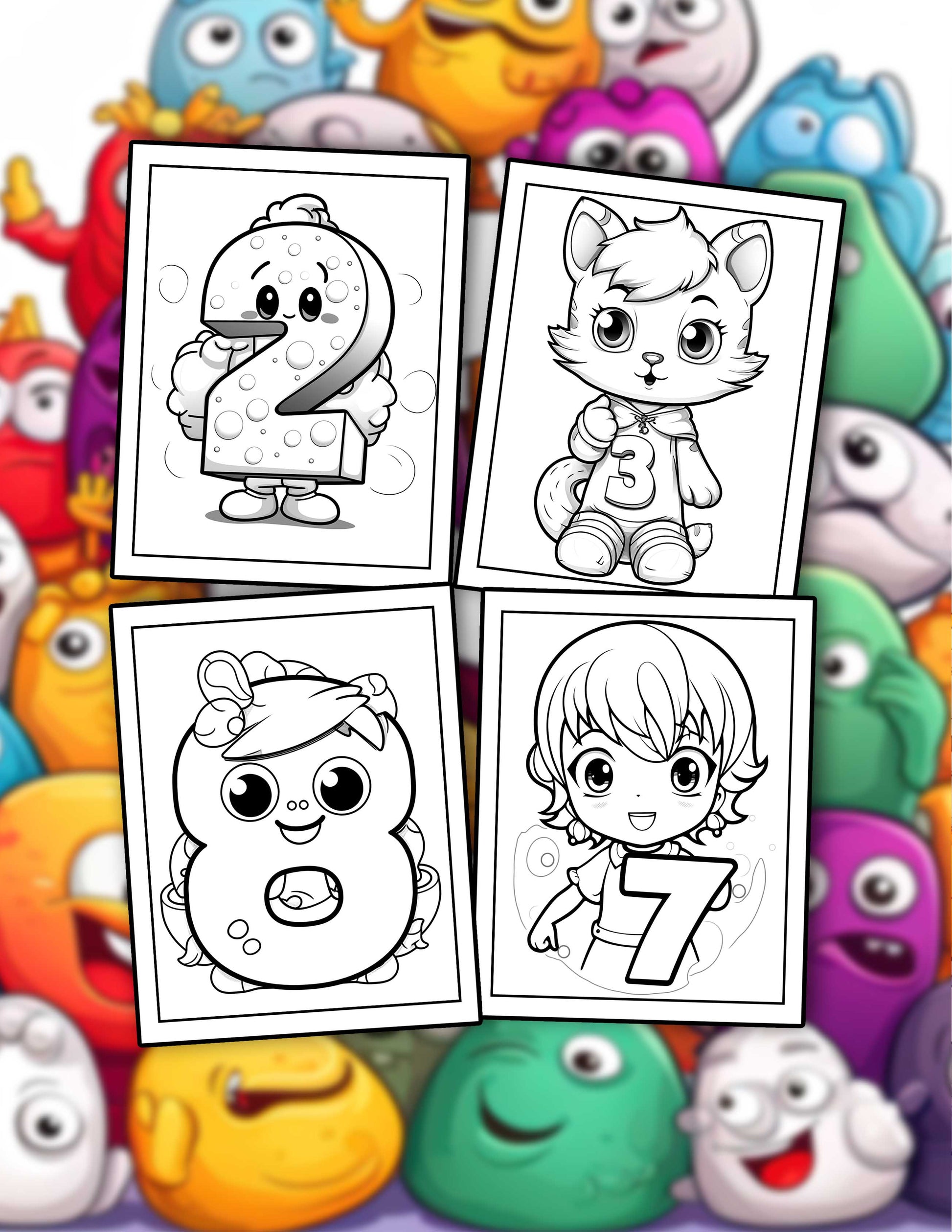 • Engaging and child-friendly designs that make learning numbers enjoyable and accessible. The illustrations are designed with bold lines and clear spaces, allowing children to easily identify and color the numbers while engaging their imagination and creativity.
