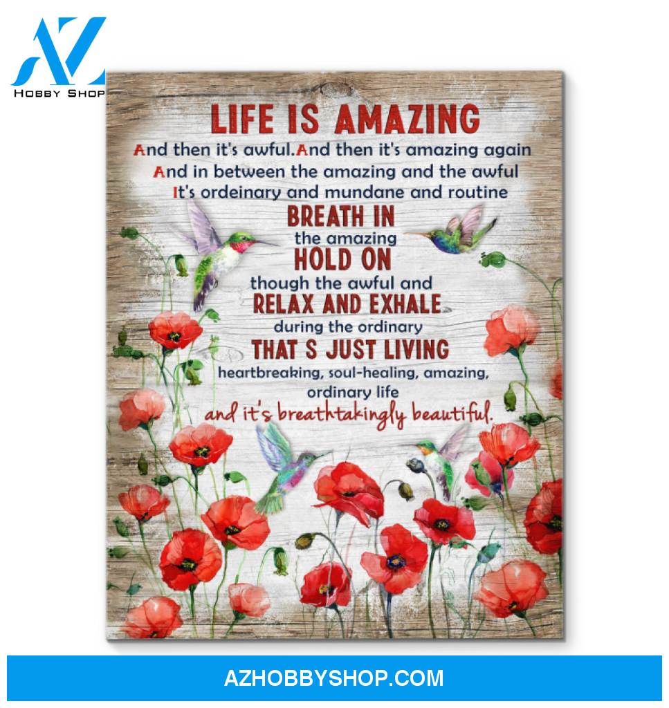 Life is Amazing Hummingbird Premium Wall Art Canvas