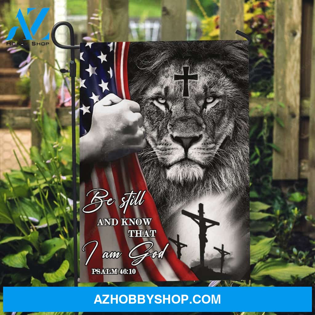Lion King, King of Kings, Black and white painting, Be still and know that I am God - Jesus Flag