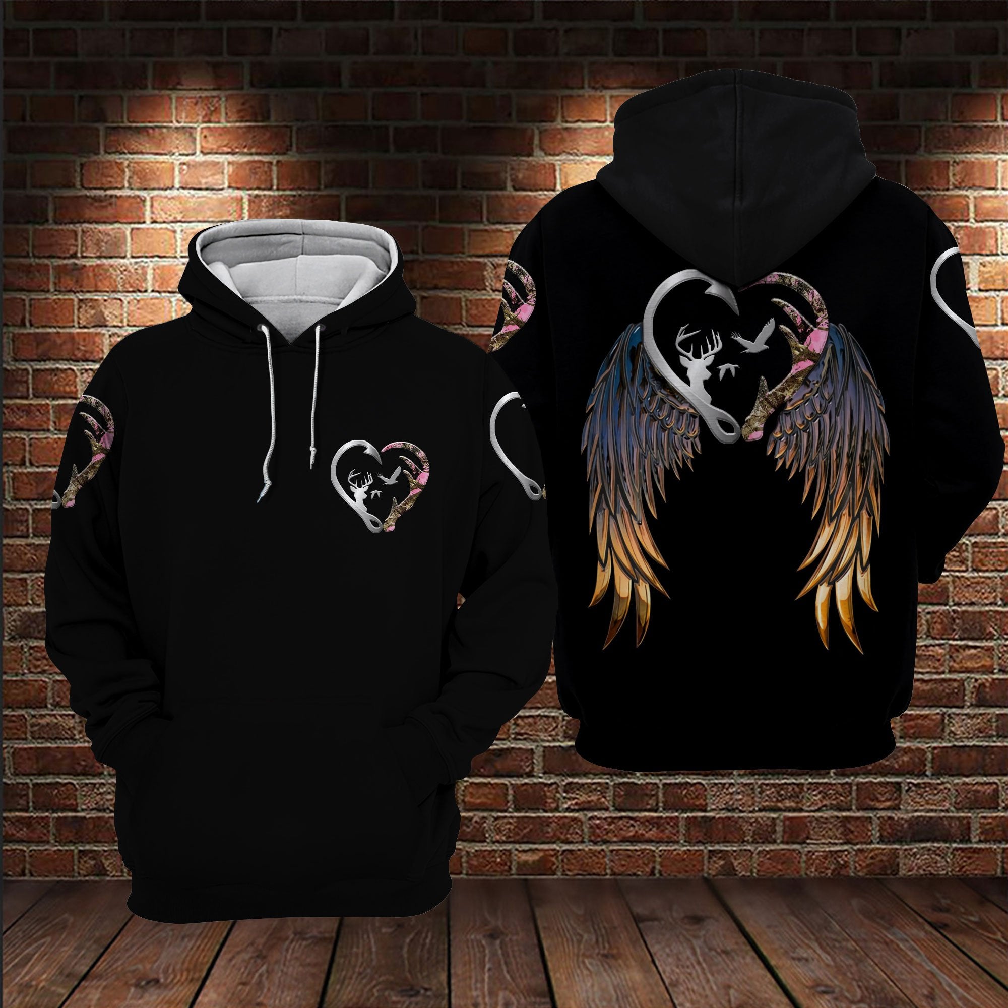 Love Fishing And Hunting All Over Printed US Unisex Size Hoodie