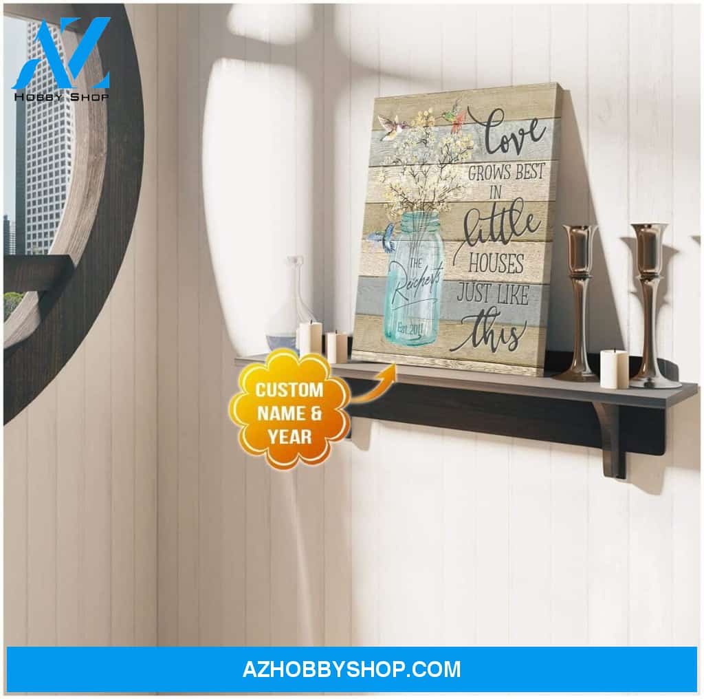 Love Grows Best Hummingbird Family Name Wall Art Canvas