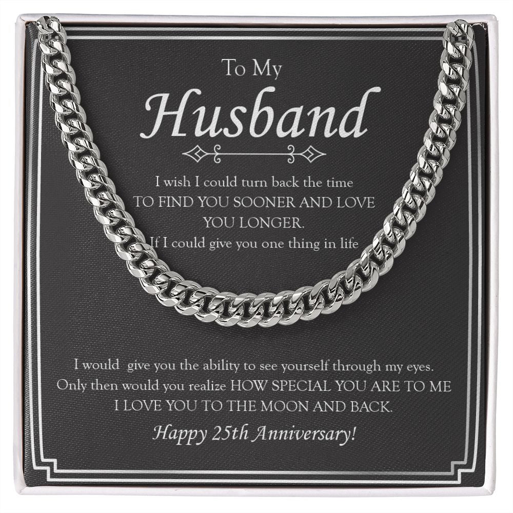 "Love You Longer" Husband Silver Wedding Anniversary Necklace Gift From Wife Cuban Link Chain Jewelry Box