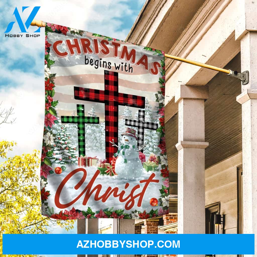 Lovely snowman, Winter season, Poinsettia drawing, Christmas begins with Christ - Jesus Flag