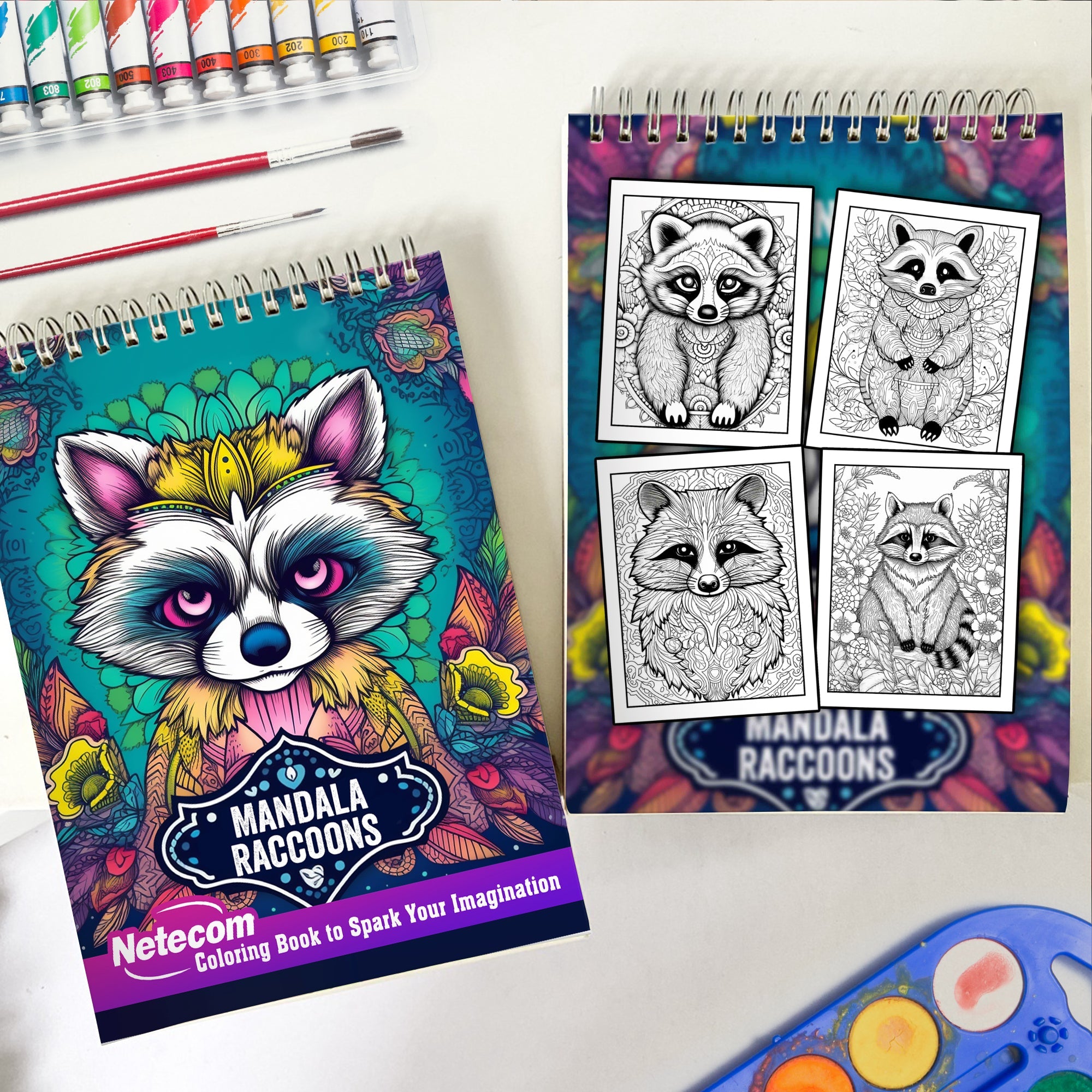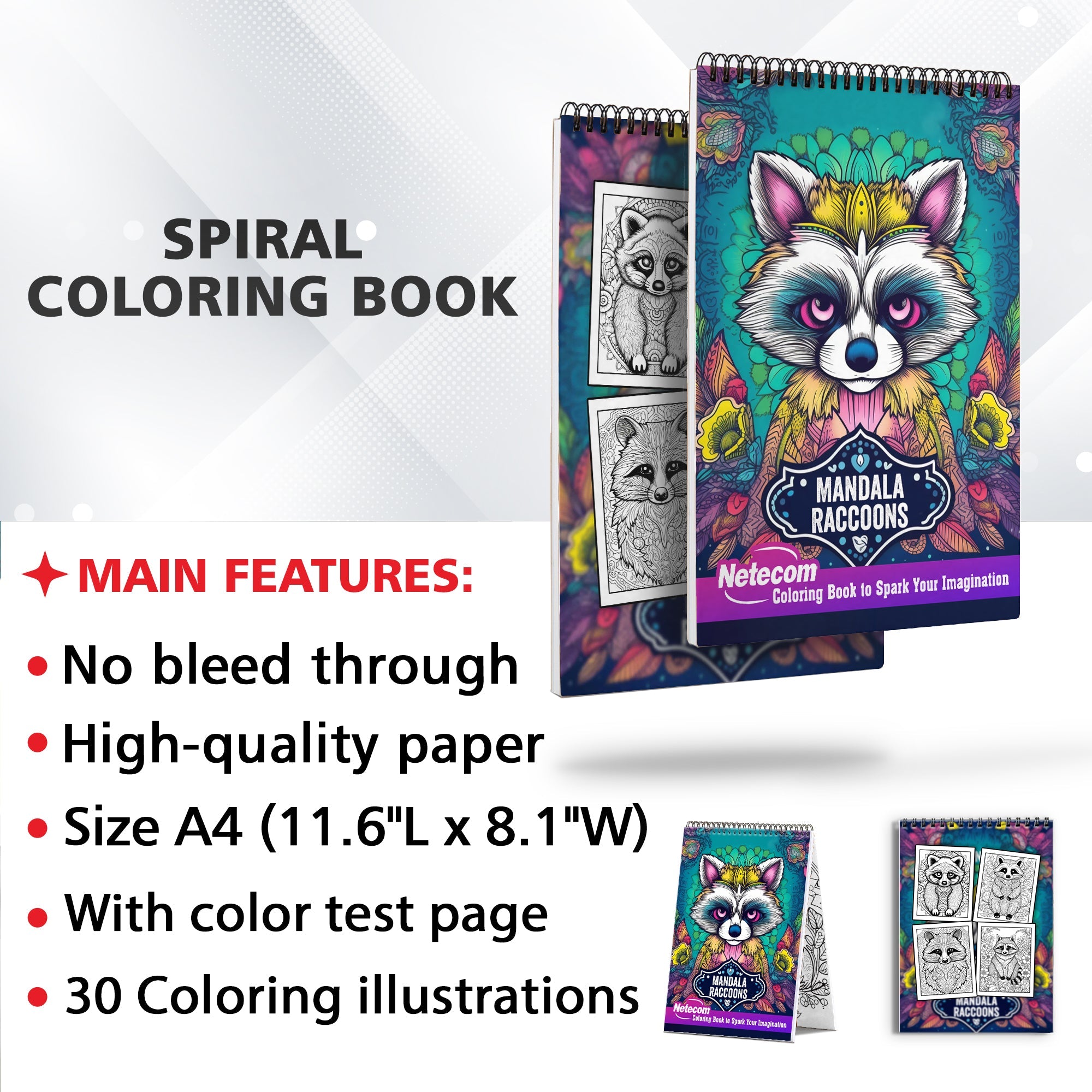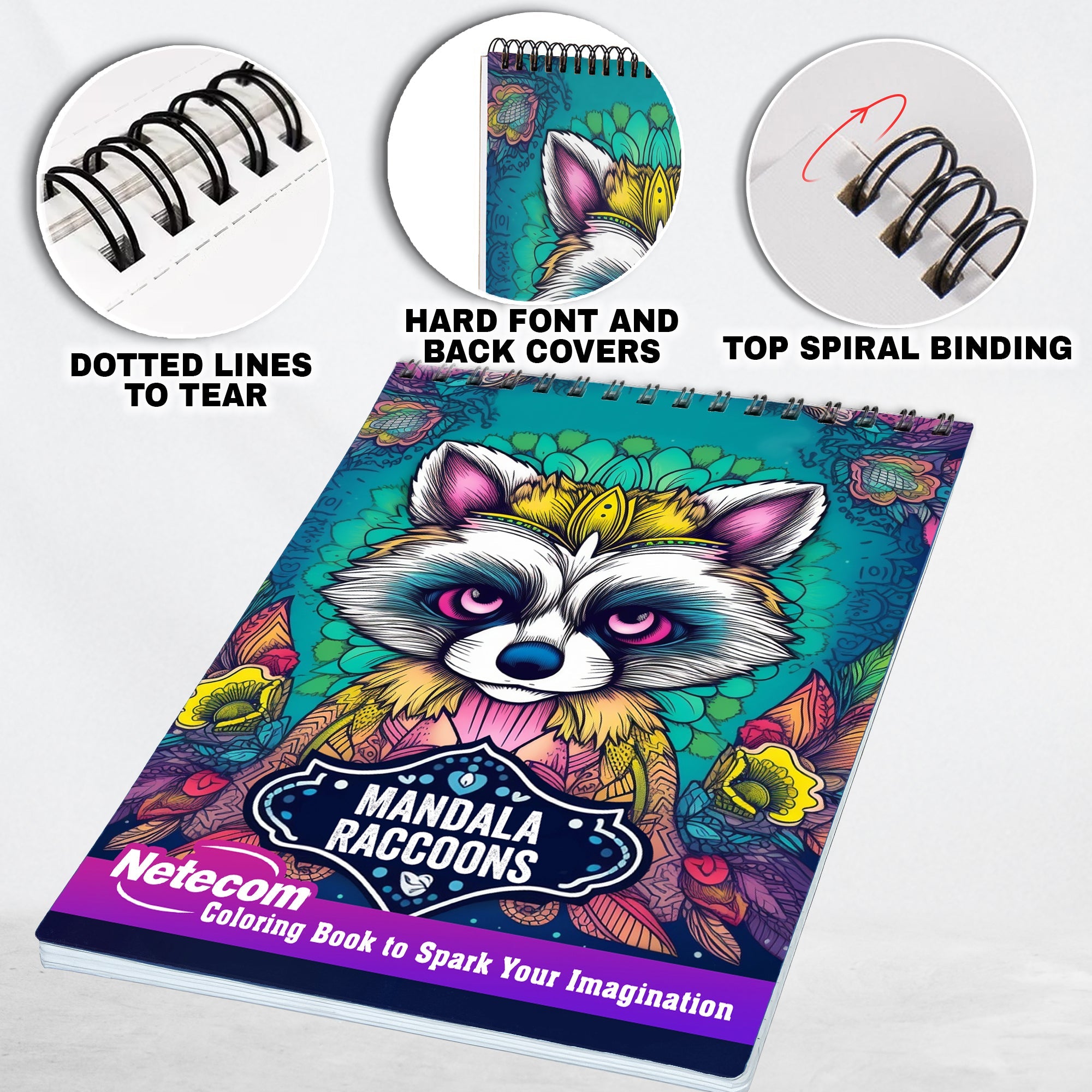 Mandala Raccoons Spiral Bound Coloring Book, 30 Raccons Mandalas Coloring Book for Unwind and Stress Relief, Excellent Gift for Animal World Lovers, Coloring Book for Adults