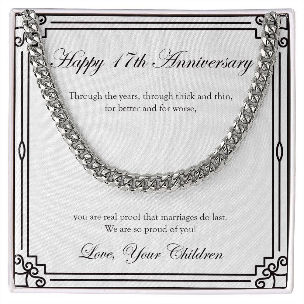 "Marriage Do Last" Dad 17th Wedding Anniversary Necklace Gift From Daughter Son Cuban Link Chain Jewelry Box