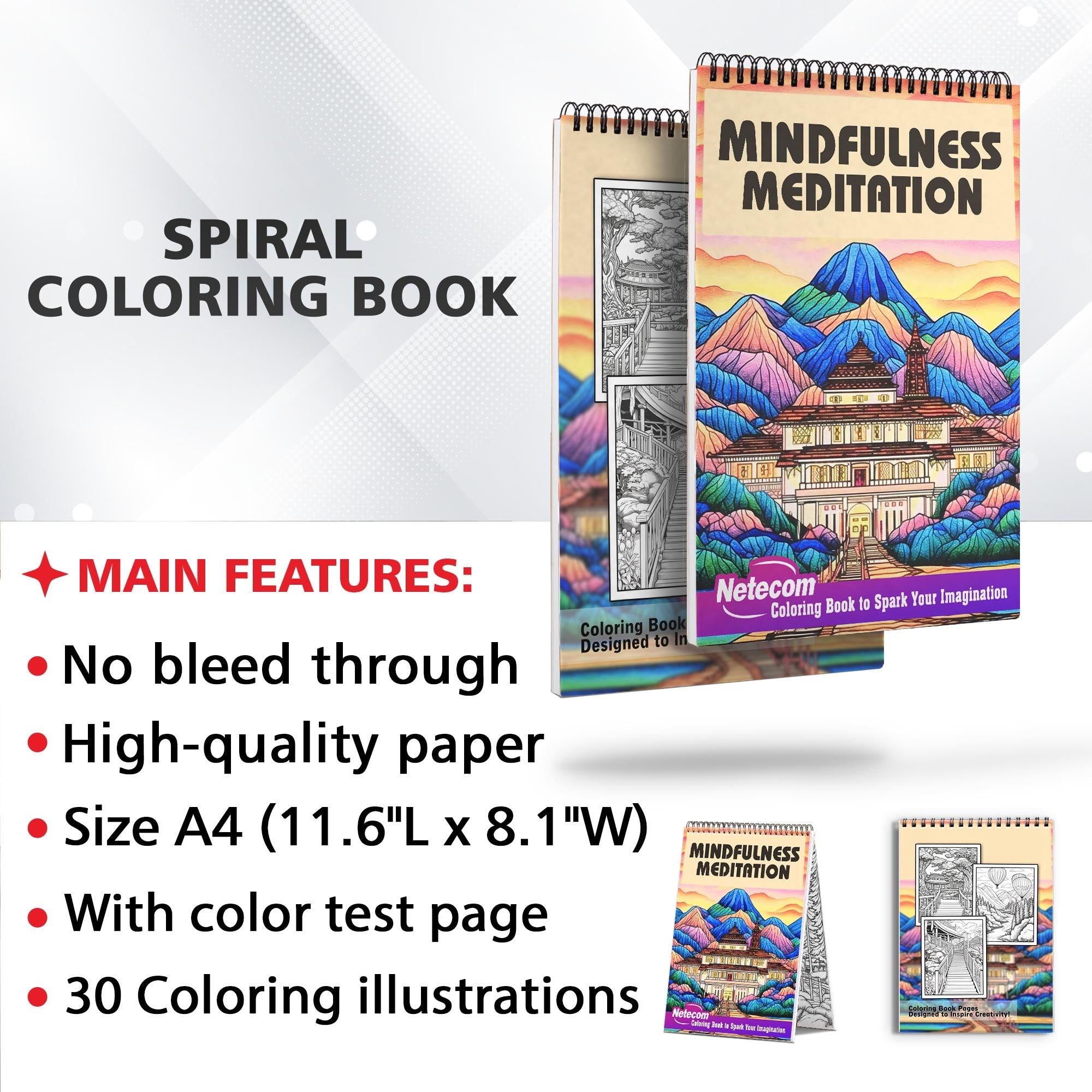 Mindfulness Meditation Spiral Bound Coloring Book, Unleash Your Creativity with 30 Mindfulness Meditation Landscape Coloring Pages, Finding Inner Peace in Nature's Splendor
