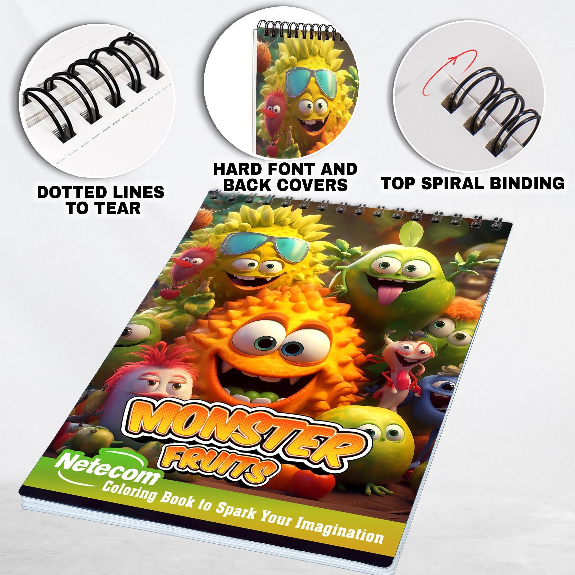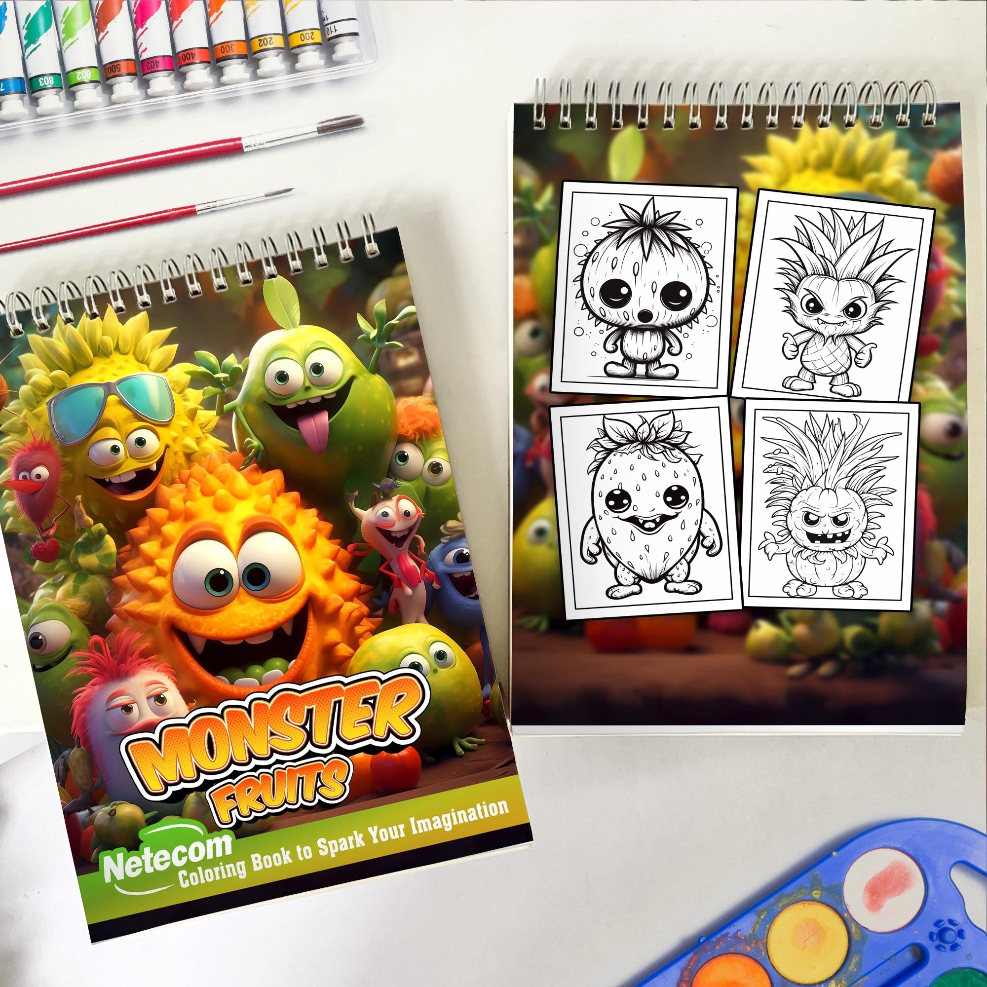 Monster Fruits Spiral Bound Coloring Book, Discover 30 Captivating Coloring Pages, Bringing Together Monsters and Fruits in Whimsical Artwork