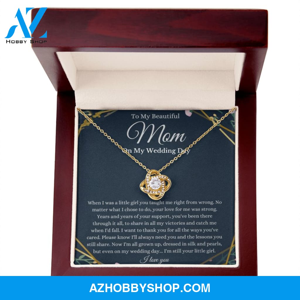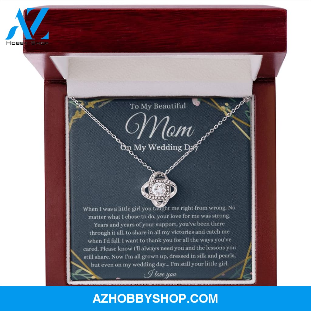 Mother of the bride gift from daughter. Love knot necklace on my wedding day.