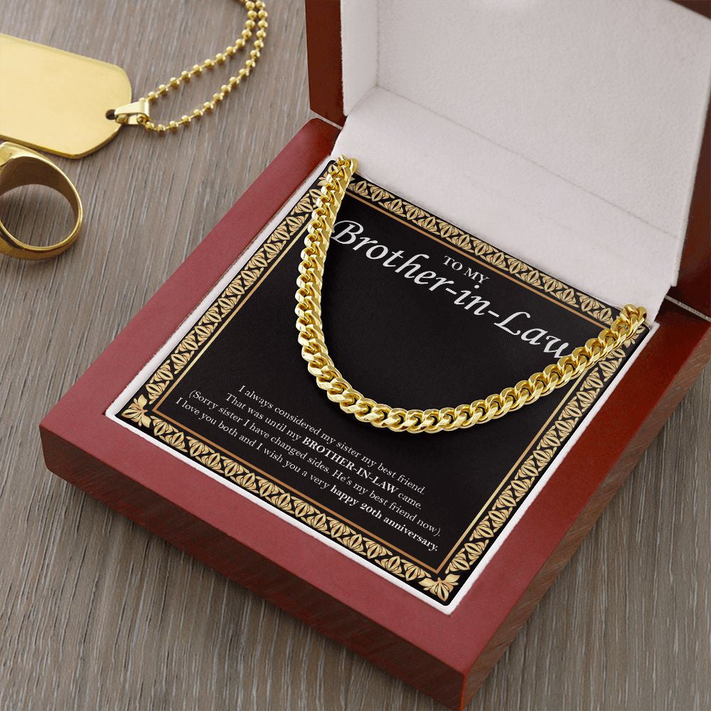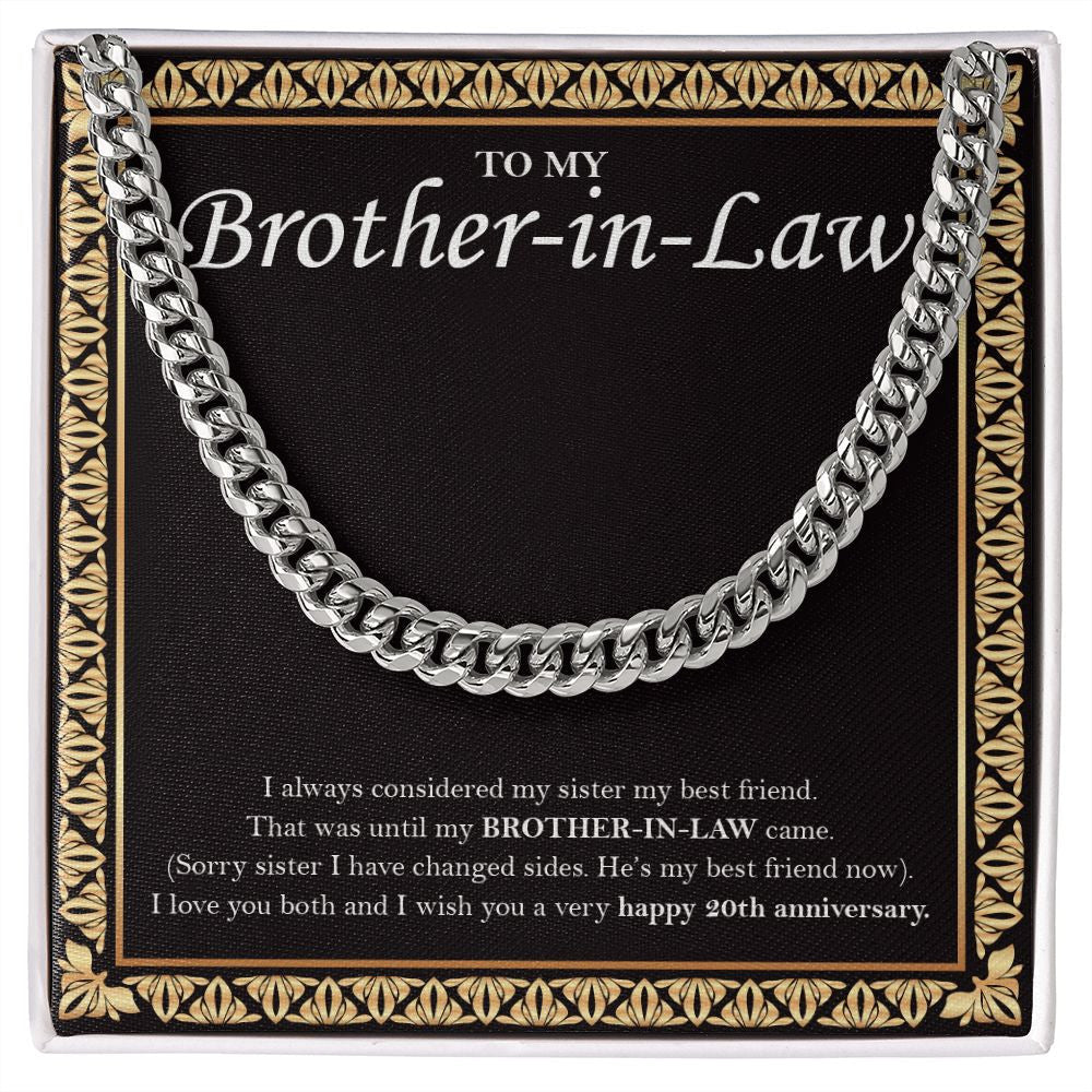 "My Sister My Bestfriend" Brother In Law 20th Wedding Anniversary Necklace Gift From Sister-In-Law Brother-In-Law Cuban Link Chain Jewelry Box