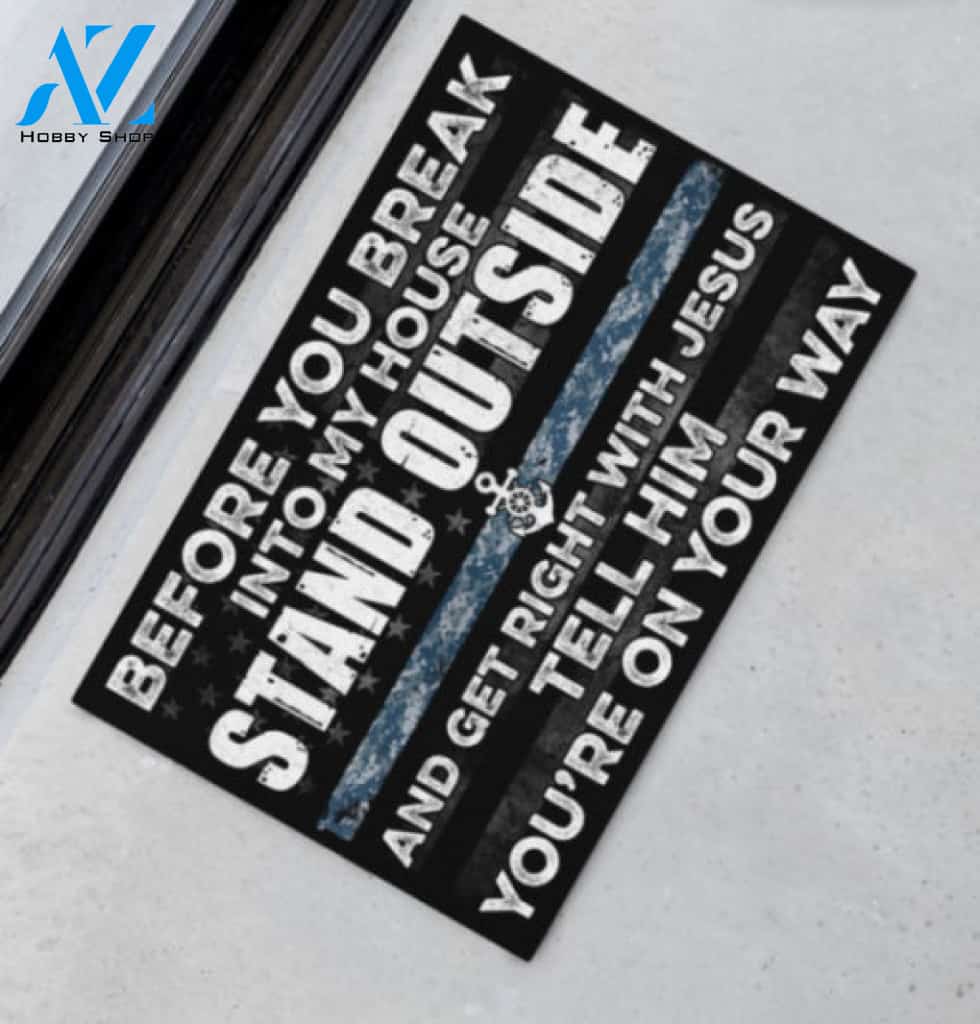 Navy Before You Break Into My House Stand Outside And Get Right With Jesus Tell Him Youre On The Way Doormat
