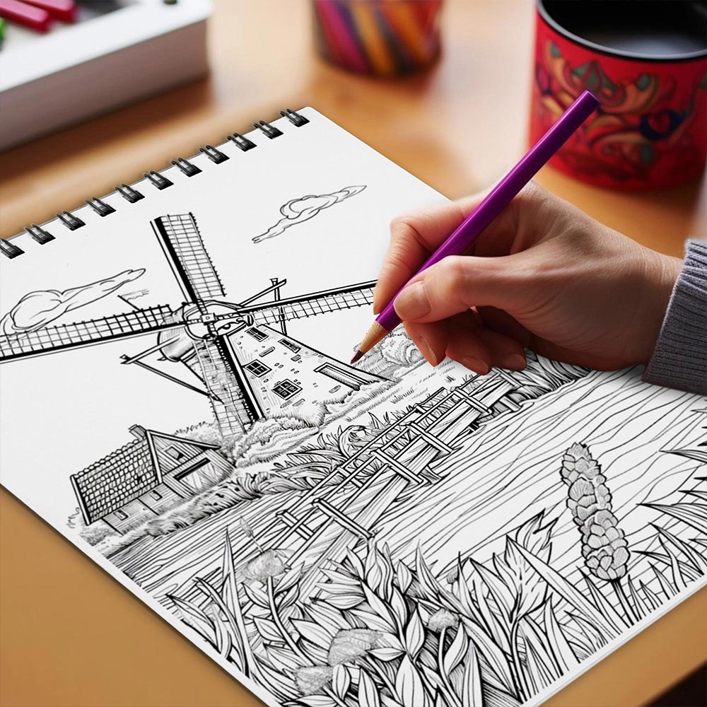DURABLE SPIRAL BINDING: Sturdy spiral bindings crafted from top-notch materials and double wire construction guarantee effortless page turning, providing you with comfort as you work on each sheet. Additionally, the spiral design allows pages to lie flat, facilitating easy coloring without the need to hold down or flatten the page.