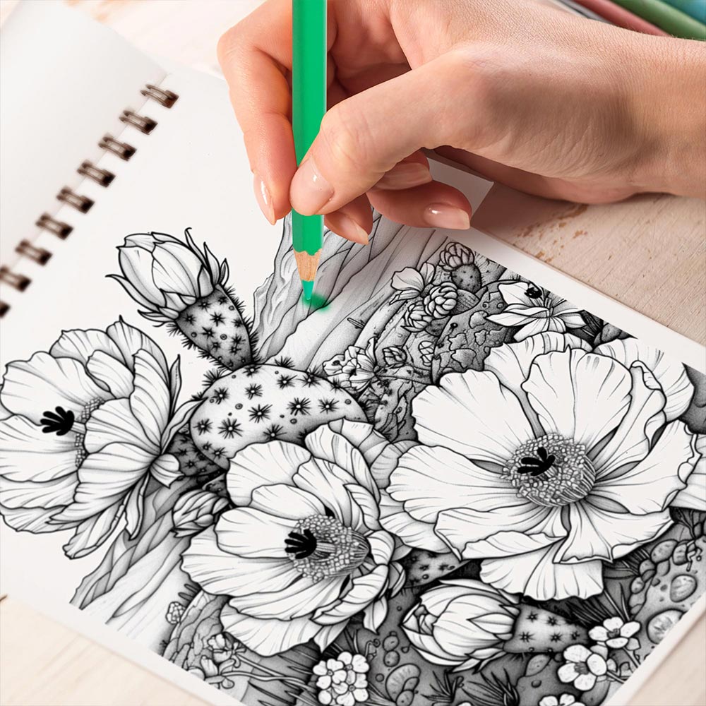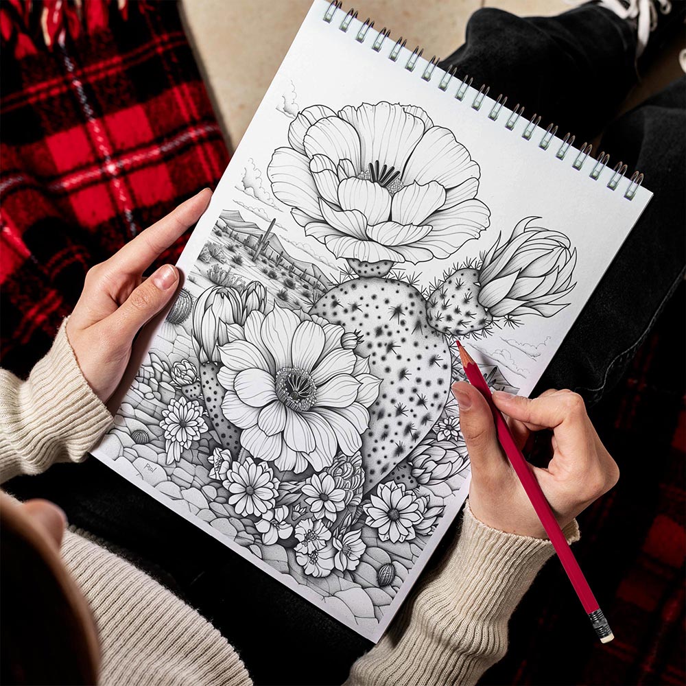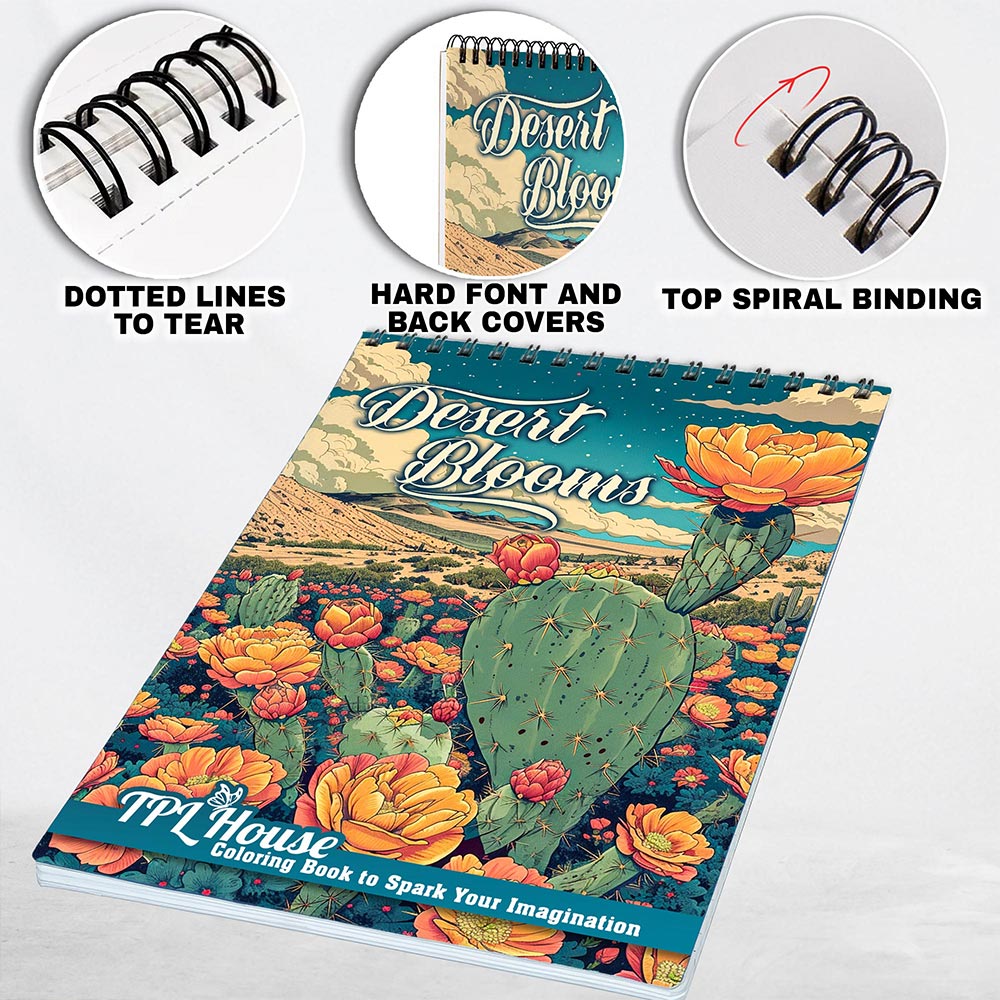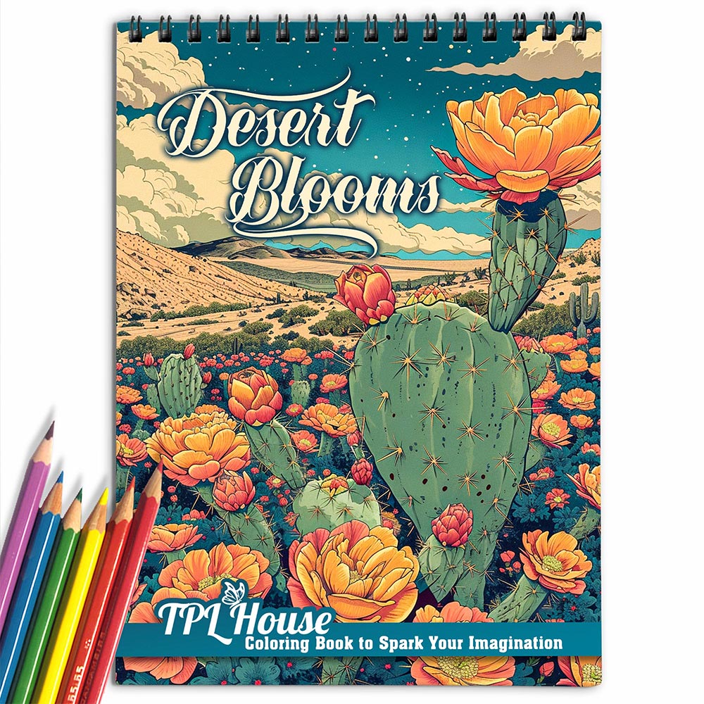 TPLHOUSE Desert Blooms Coloring Book for Adults, Spiral Bound, Soft Cover