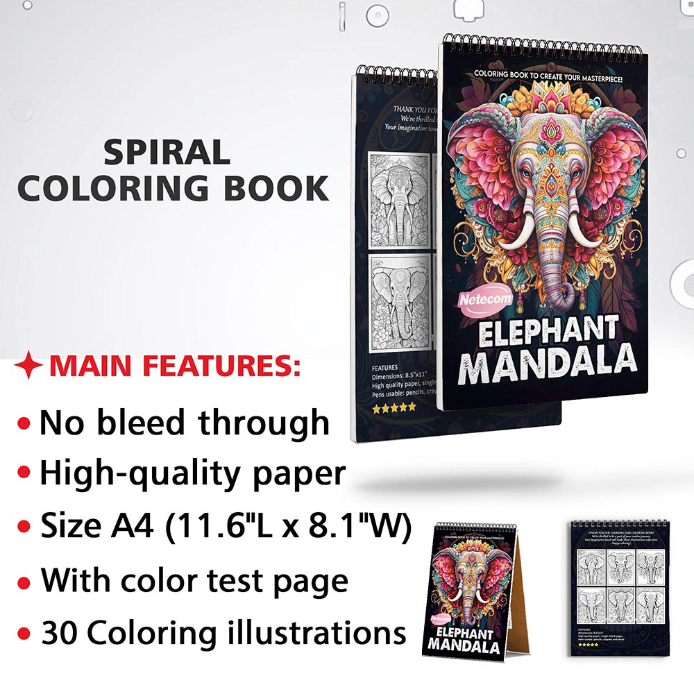 Netecom Elephant Mandala Coloring Book for Adults, Spiral Bound, Soft Cover