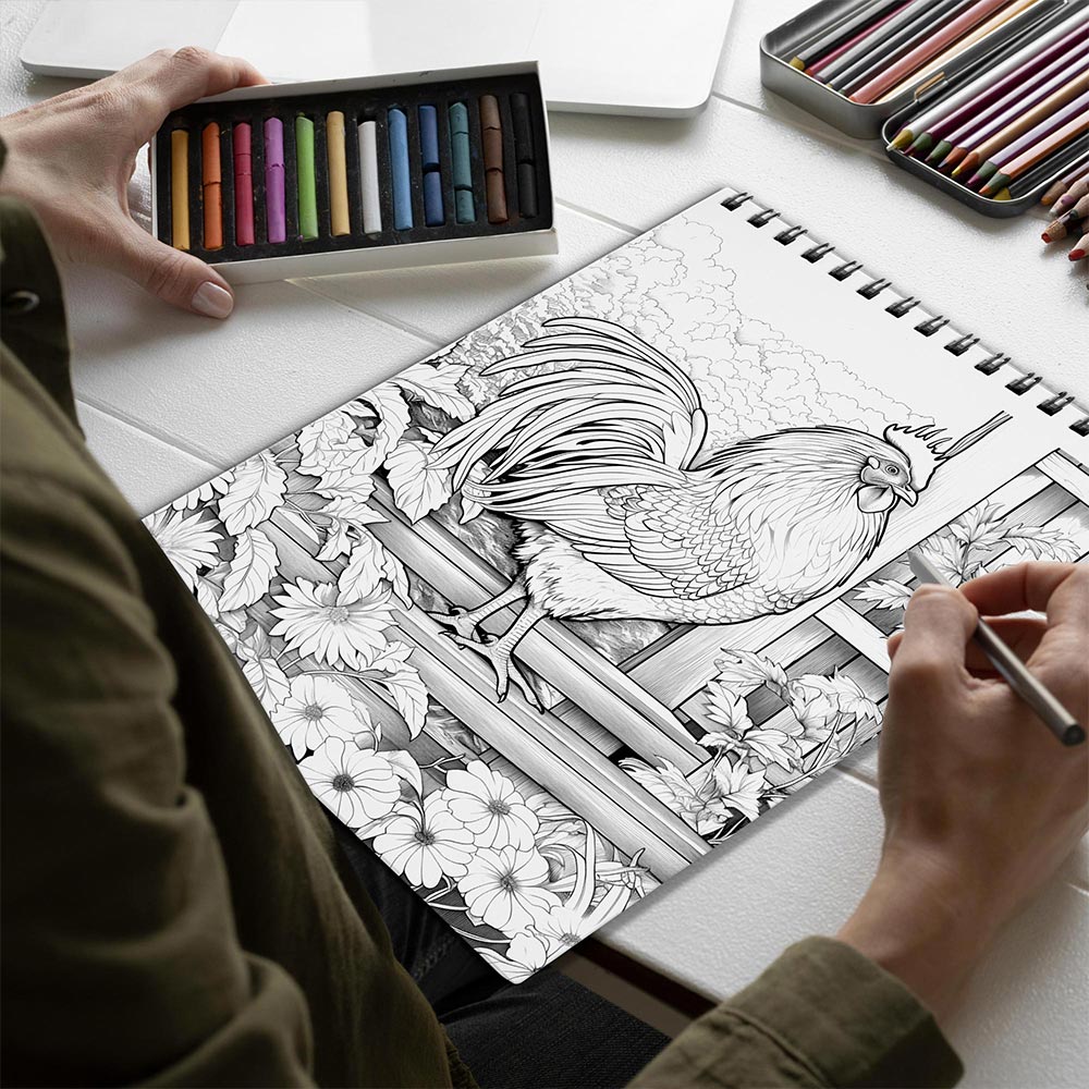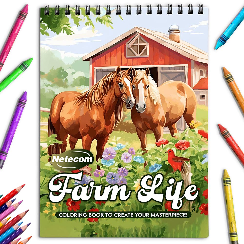 Netecom Farm Life Coloring Book for Adults, Spiral Bound, Soft Cover