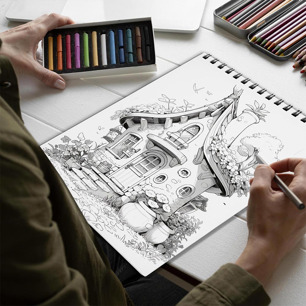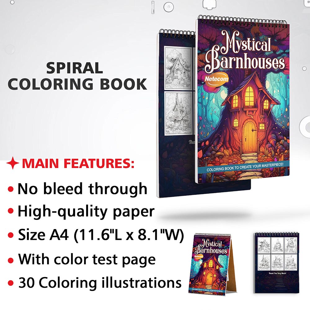 Netecom Mystical Barn houses Coloring Book for Adults, Spiral Bound, Soft Cover