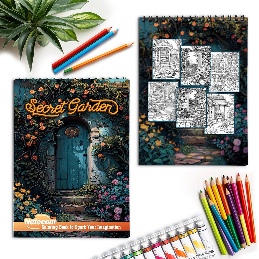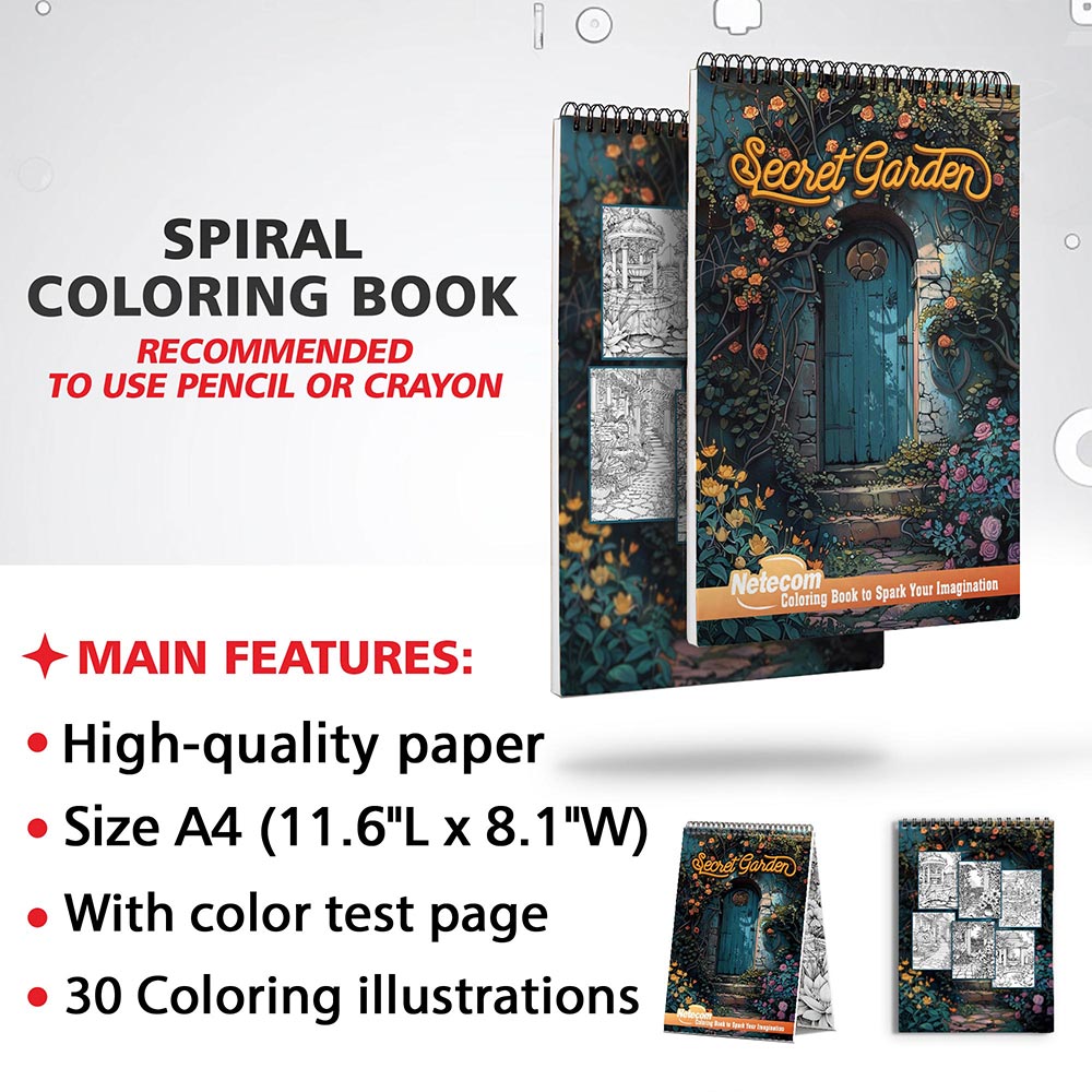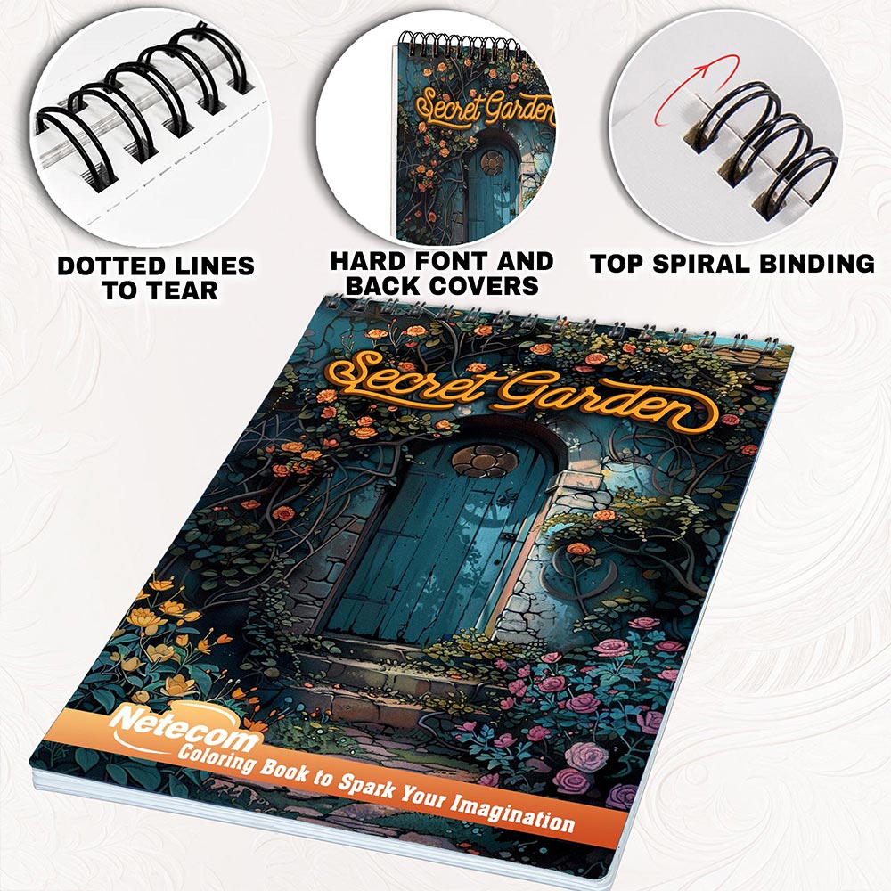 Netecom Secret Garden Coloring Book for Adults, Spiral Bound, Soft Cover